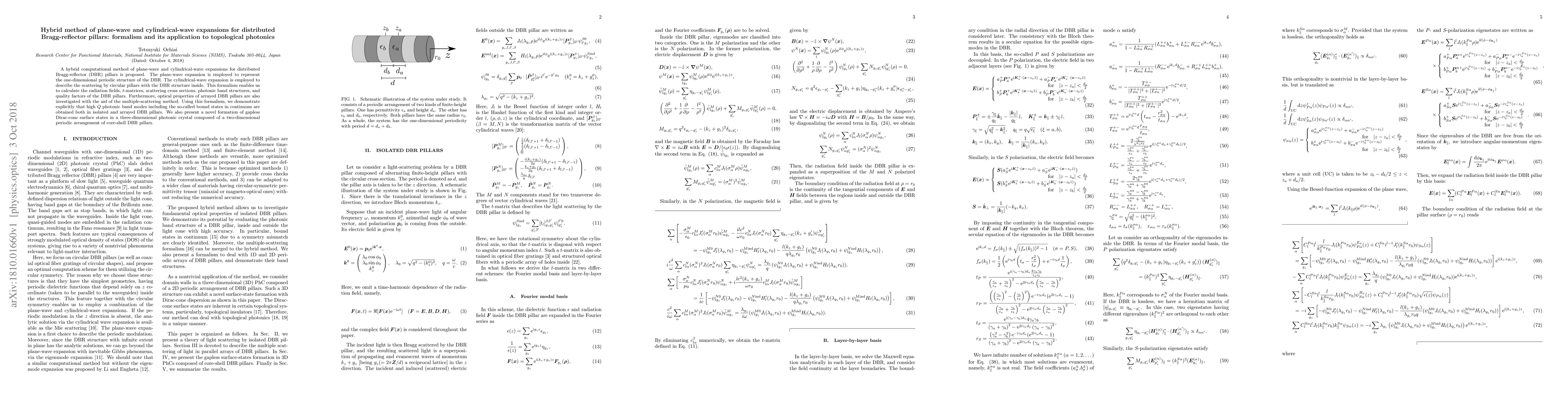 This paper proposes a hybrid computational method combining plane-wave and cylindrical-wave expansions to analyze distributed Bragg-reflector pillars, enabling calculations of radiation fields and photonic band structures. It demonstrates high-quality photonic modes and introduces novel gapless Dirac-cone surface states in three-dimensional photonic crystals.