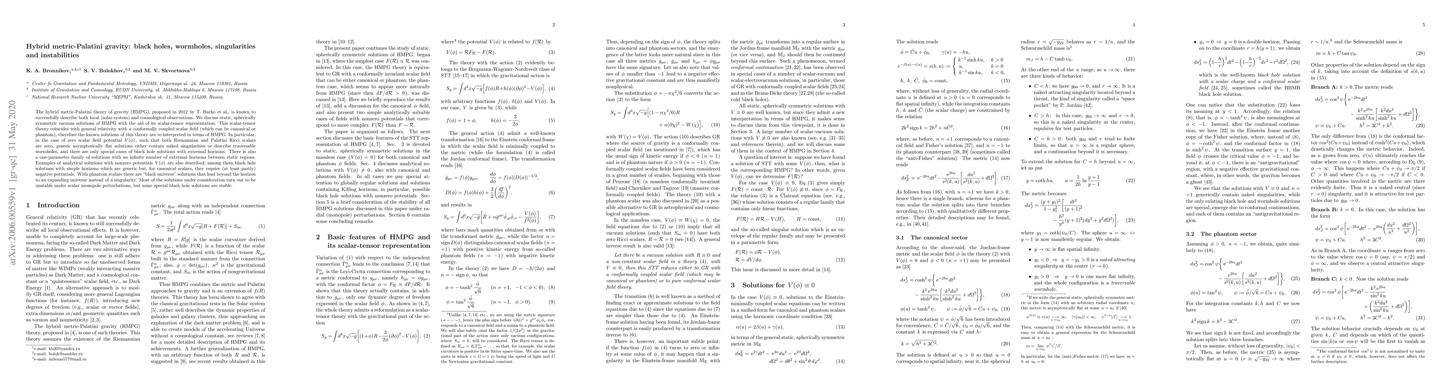 A study on hybrid metric-Palatini gravity reveals that certain solutions can describe wormholes, singularities, or black holes with stable horizons, while others lead to unstable or expanding universes.