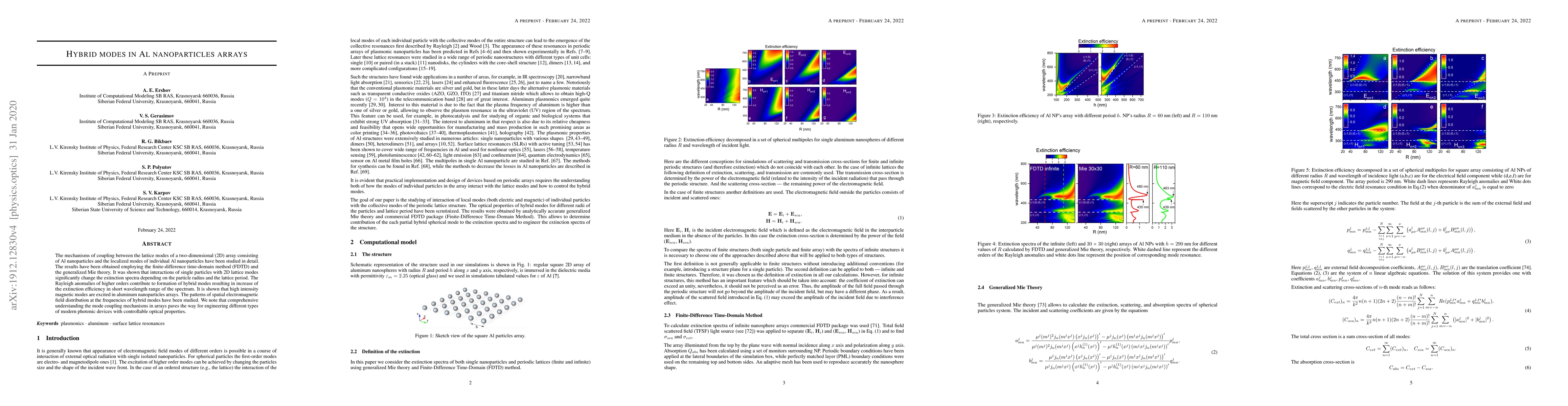 The mechanisms of coupling between the lattice modes of a two-dimensional (2D) array consisting of Al nanoparticles and the localized modes of individual Al nanoparticles have been studied in detail. The results have been obtained employing the finite-difference time-domain method (FDTD) and the generalized Mie theory. It was shown that interactions of single particles with 2D lattice modes significantly change the extinction spectra depending on the particle radius and the lattice period. The Rayleigh anomalies of higher orders contribute to formation of hybrid modes resulting in increase of the extinction efficiency in short wavelength range of the spectrum. It is shown that high intensity magnetic modes are excited in aluminum nanoparticles arrays. The patterns of spatial electromagnetic field distribution at the frequencies of hybrid modes have been studied. We note that comprehensive understanding the mode coupling mechanisms in arrays paves the way for engineering different types of modern photonic devices with controllable optical properties.