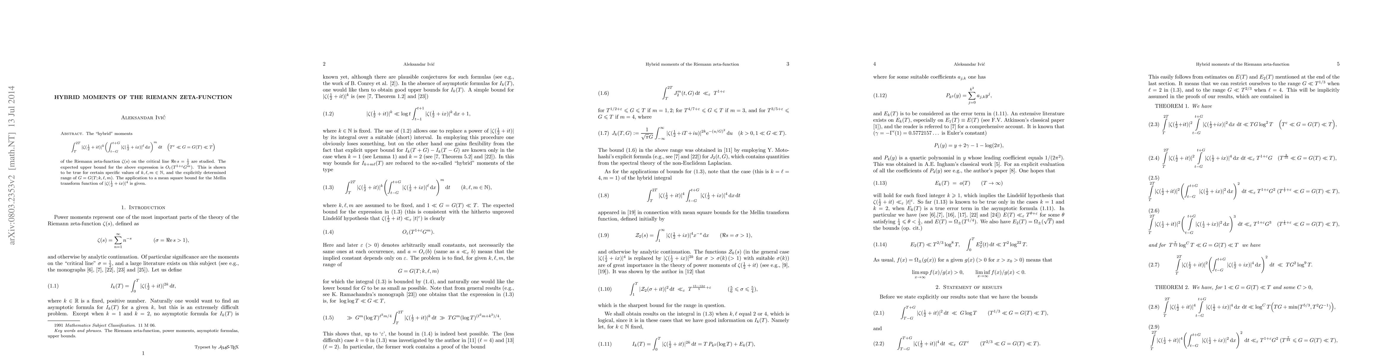 The paper presents rigorous proofs and detailed analysis of hybrid moments, extending previous work by providing explicit ranges for G and specific values of k, l, m for which the expected upper bound holds.