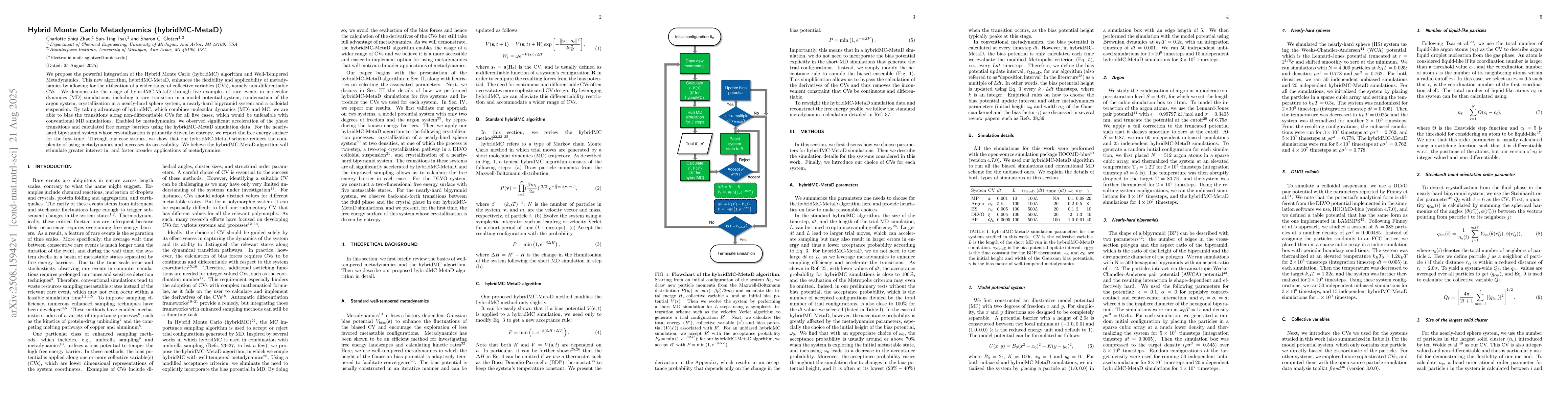 We propose the powerful integration of the Hybrid Monte Carlo (hybridMC) algorithm and Well-Tempered Metadynamics. This new algorithm, hybridMC-MetaD, enhances the flexibility and applicability of metadynamics by allowing for the utilization of a wider range of collective variables (CVs), namely non-differentiable CVs. We demonstrate the usage of hybridMC-MetaD through five examples of rare events in molecular dynamics (MD) simulations, including a rare transition in a model potential system, condensation of the argon system, crystallization in a nearly-hard sphere system, a nearly-hard bipyramid system and a colloidal suspension. By taking advantage of hybridMC, which combines molecular dynamics (MD) and MC, we are able to bias the transitions along non-differentiable CVs for all five cases, which would be unfeasible with conventional MD simulations. Enabled by metadynamics, we observed significant acceleration of the phase transitions and calculated free energy barriers using the hybridMC-MetaD simulation data. For the nearly-hard bipyramid system whose crystallization is primarily driven by entropy, we report the free energy surface for the first time. Through our case studies, we show that our hybridMC-MetaD scheme reduces the complexity of using metadynamics and increases its accessibility. We believe the hybridMC-MetaD algorithm will stimulate greater interest in, and foster broader applications of metadynamics.