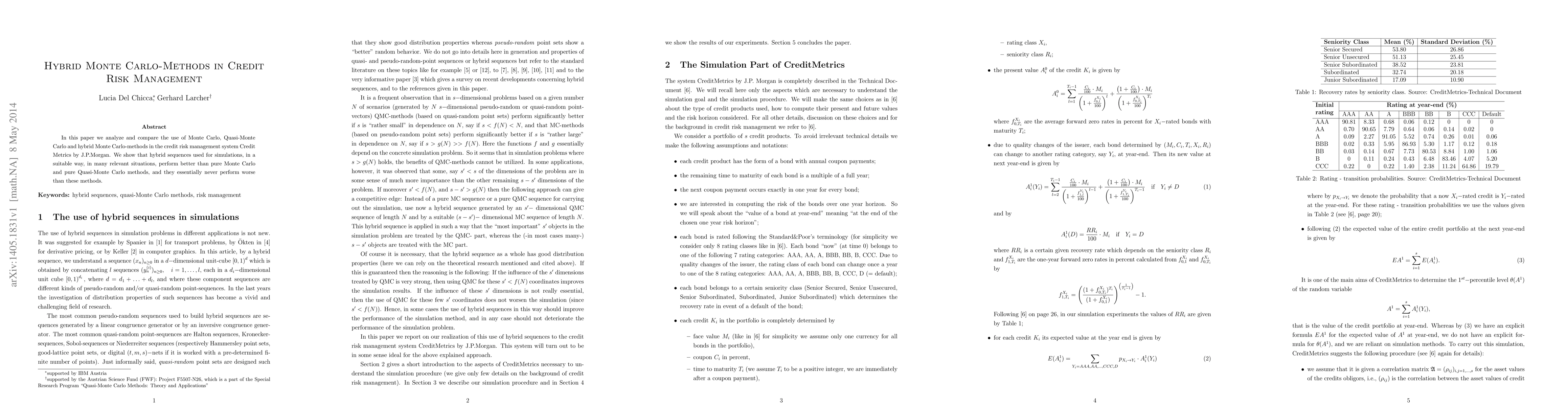 Two-line summary: This paper evaluates the performance of Monte Carlo, Quasi-Monte Carlo, and hybrid Monte Carlo methods in credit risk management within J.P. Morgan’s Credit Metrics system, demonstrating that hybrid methods often outperform pure Monte Carlo and Quasi-Monte Carlo methods, and rarely perform worse.