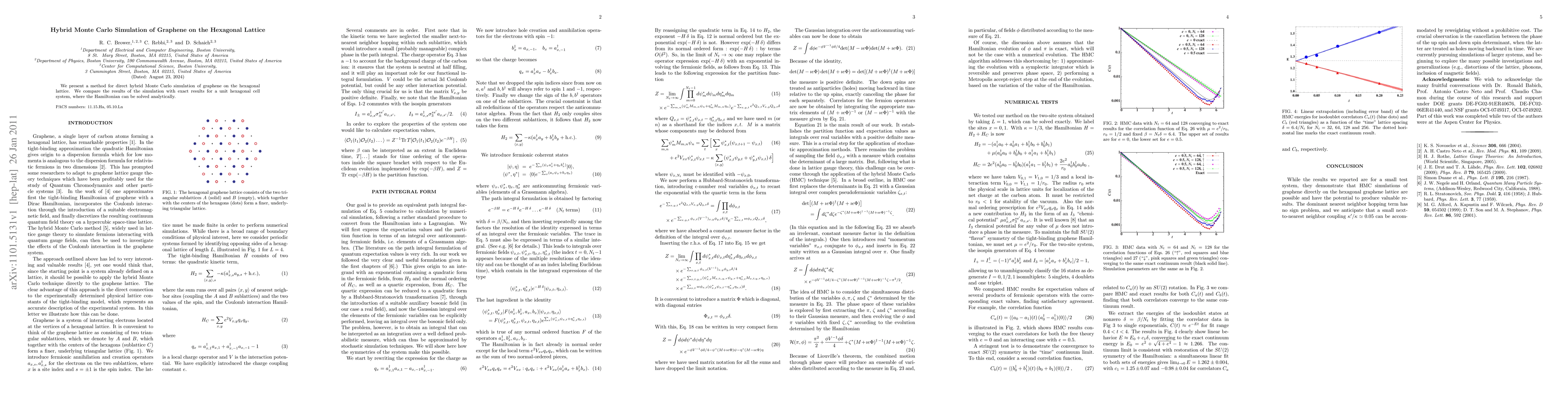 This paper introduces a hybrid Monte Carlo simulation technique to study graphene on a hexagonal lattice and compares its outcomes with exact analytical solutions for a unit hexagonal cell, validating the method's accuracy.
