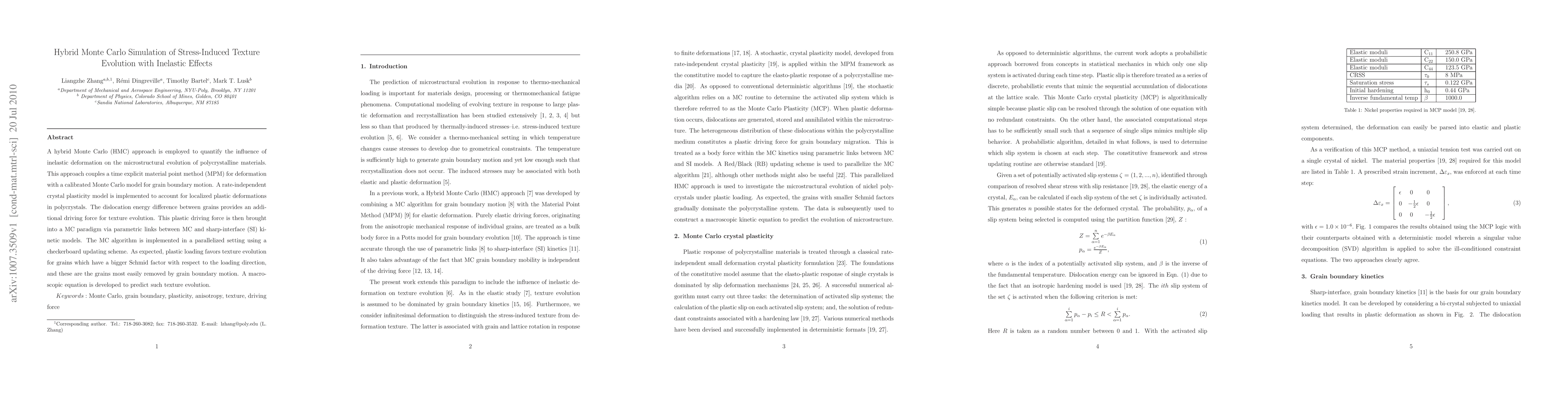 A hybrid Monte Carlo (HMC) approach is employed to quantify the influence of inelastic deformation on the microstructural evolution of polycrystalline materials. This approach couples a time explicit material point method (MPM) for deformation with a calibrated Monte Carlo model for grain boundary motion. A rate-independent crystal plasticity model is implemented to account for localized plastic deformations in polycrystals. The dislocation energy difference between grains provides an additional driving force for texture evolution. This plastic driving force is then brought into a MC paradigm via parametric links between MC and sharp-interface (SI) kinetic models. The MC algorithm is implemented in a parallelized setting using a checkerboard updating scheme. As expected, plastic loading favors texture evolution for grains which have a bigger Schmid factor with respect to the loading direction, and these are the grains most easily removed by grain boundary motion. A macroscopic equation is developed to predict such texture evolution.