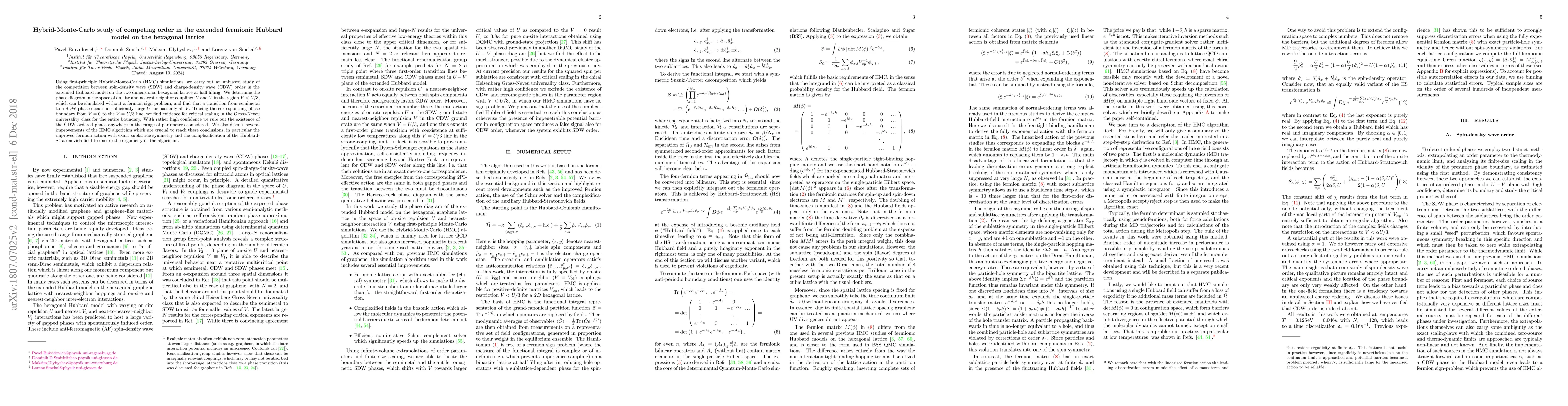This study uses Hybrid-Monte-Carlo simulations to explore the competition between spin-density wave and charge-density wave order in a two-dimensional hexagonal lattice Hubbard model at half filling. It finds that a transition from semimetal to a SDW phase occurs at sufficiently large U for all V, ruling out CDW ordered phases.