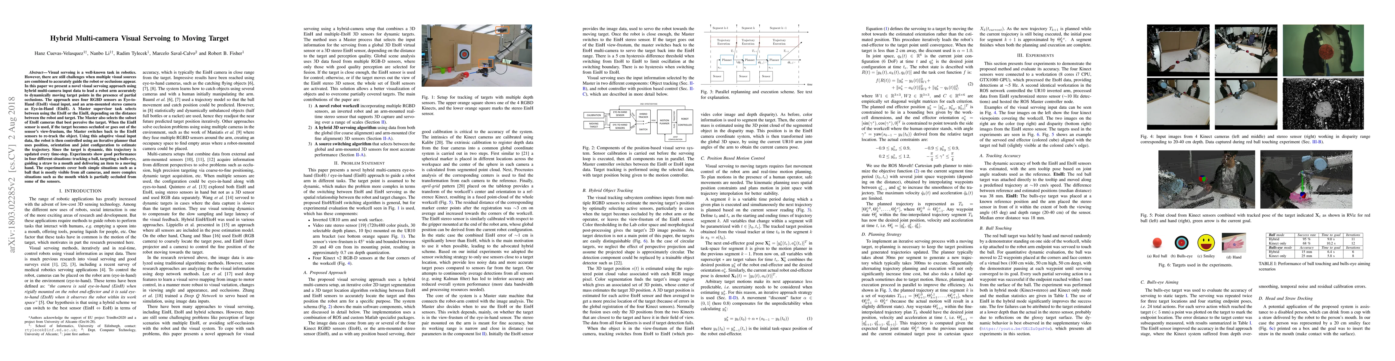 A new approach to visual servoing uses hybrid multi-camera input data to guide a robot arm accurately to moving targets with partial occlusions, achieving good performance in various tracking scenarios.