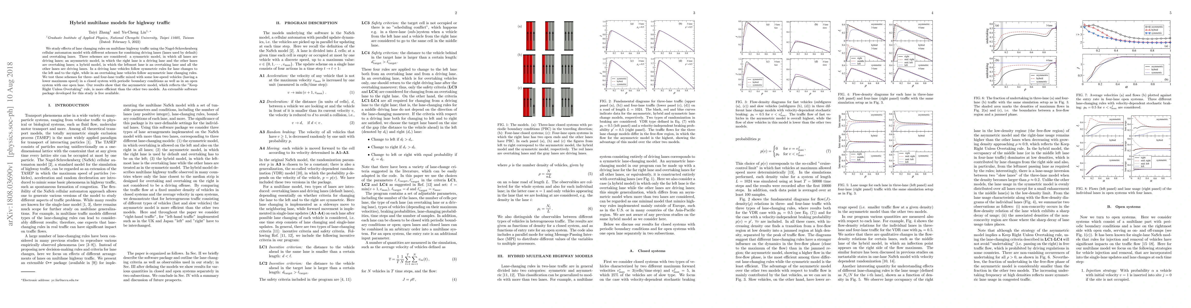 This paper investigates lane changing rules in multilane highway traffic using the Nagel-Schreckenberg model, comparing symmetric, asymmetric, and hybrid lane usage schemes. The asymmetric model, mimicking the "Keep Right Unless Overtaking" rule, proves most efficient for mixed three- and four-lane traffic scenarios.