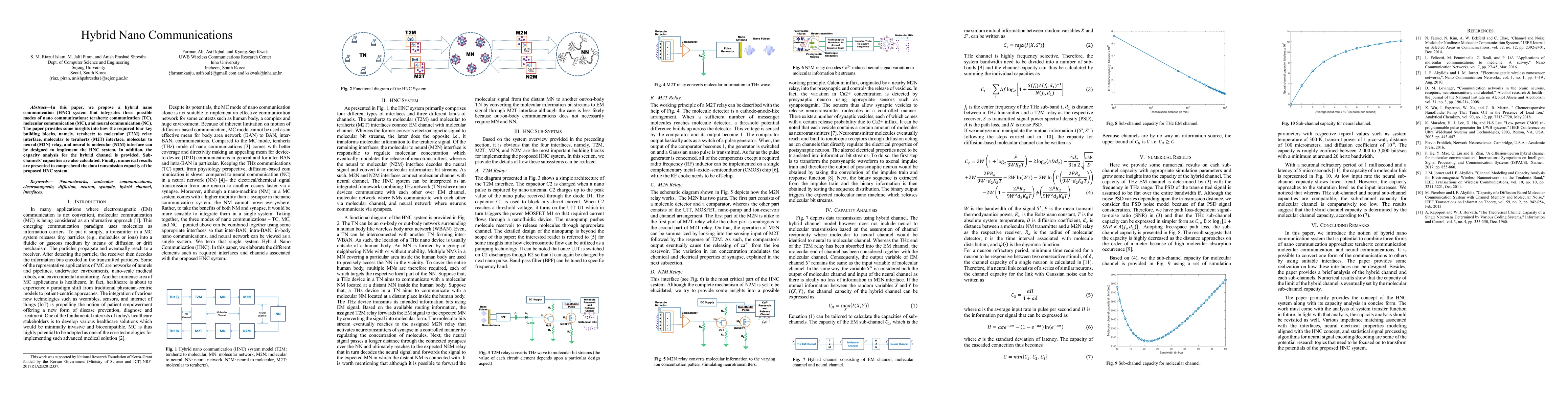 This paper introduces a Hybrid Nano Communication (HNC) system integrating terahertz, molecular, and neural communications. It outlines the design of four key interfaces and provides capacity analysis for the hybrid channel, supported by numerical results demonstrating the data transmission capacity of the proposed HNC system.