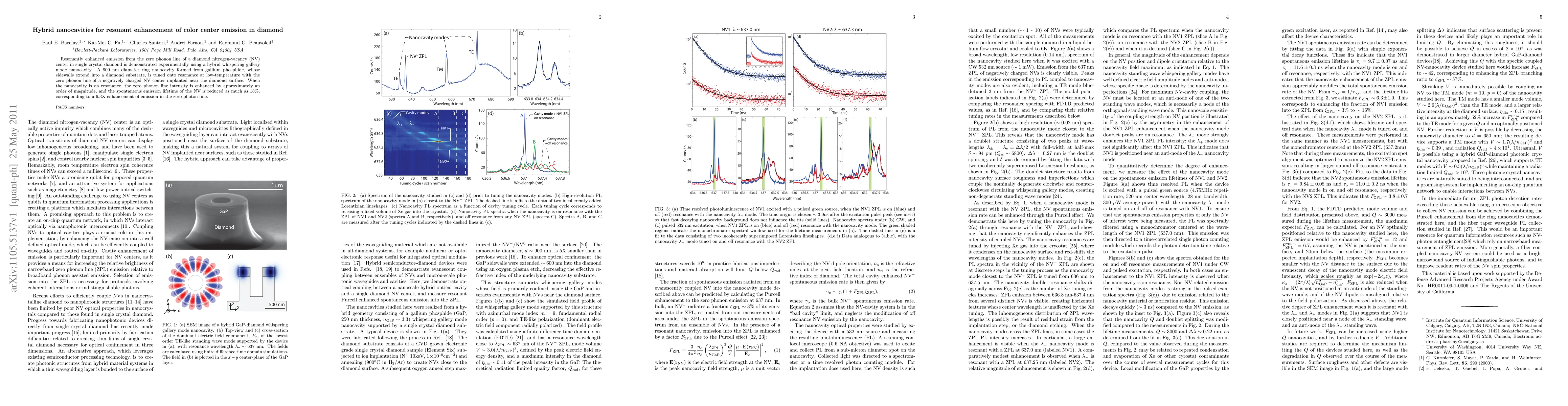 This paper demonstrates experimentally the resonant enhancement of nitrogen-vacancy (NV) center emission in diamond using a hybrid nanocavity. The 900 nm gallium phosphide ring nanocavity, integrated with diamond, enhances the zero phonon line intensity by an order of magnitude and reduces the NV center's spontaneous emission lifetime by 18%.