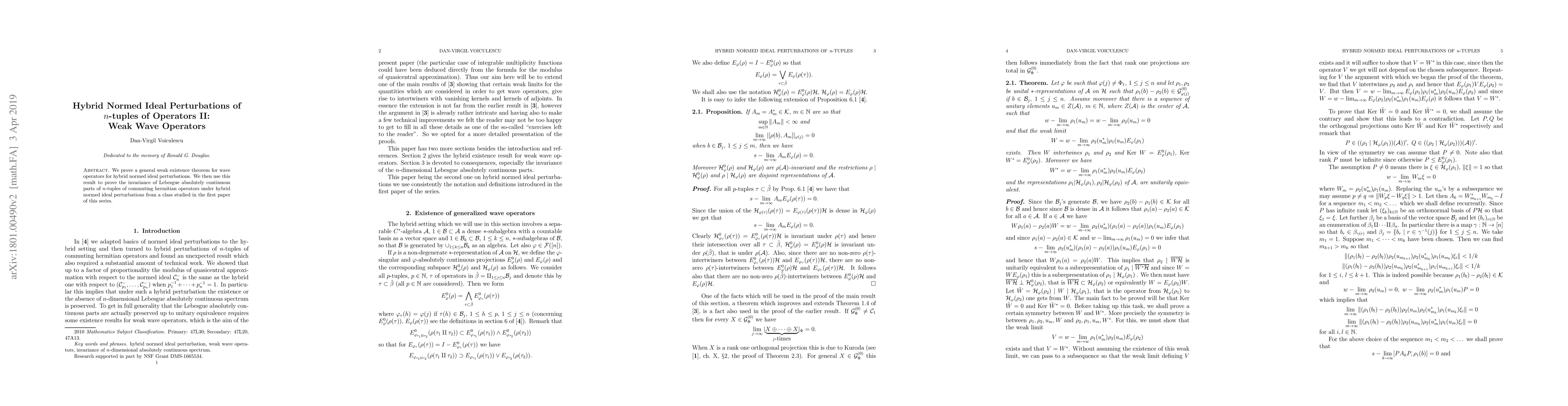 This paper establishes a general weak existence theorem for wave operators in hybrid normed ideal perturbations and demonstrates the invariance of Lebesgue absolutely continuous parts of n-tuples of commuting hermitian operators under such perturbations.