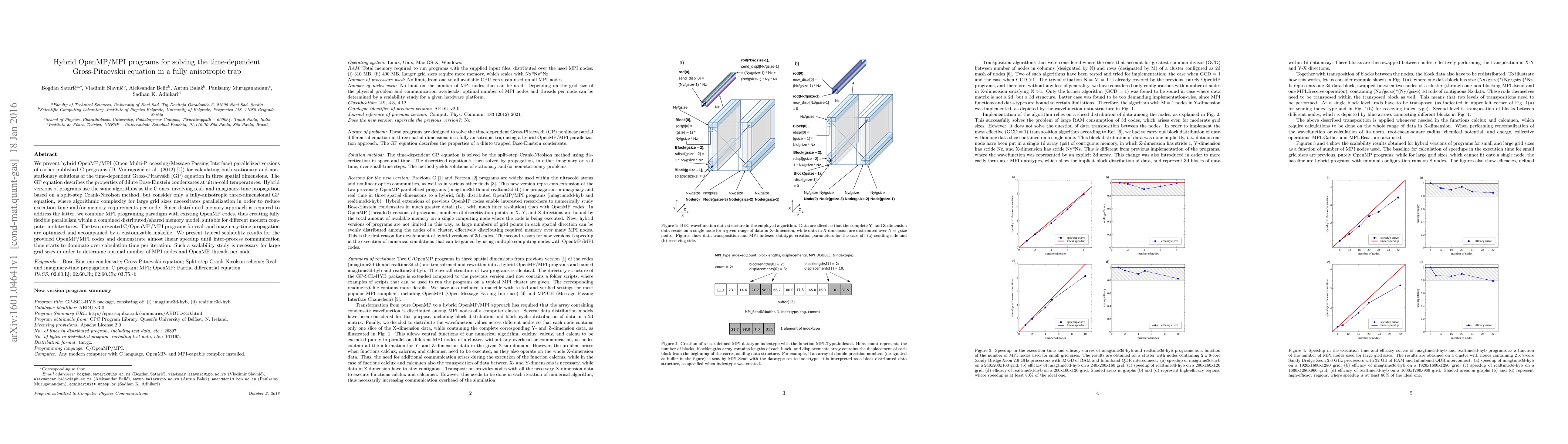 This paper presents hybrid OpenMP/MPI parallelized versions of C programs to solve the time-dependent Gross-Pitaevskii equation in a fully anisotropic trap, optimizing both real- and imaginary-time propagation. The study demonstrates almost linear scalability up to a certain point, highlighting the importance of balancing inter-process communication and computational efficiency for large grid sizes.