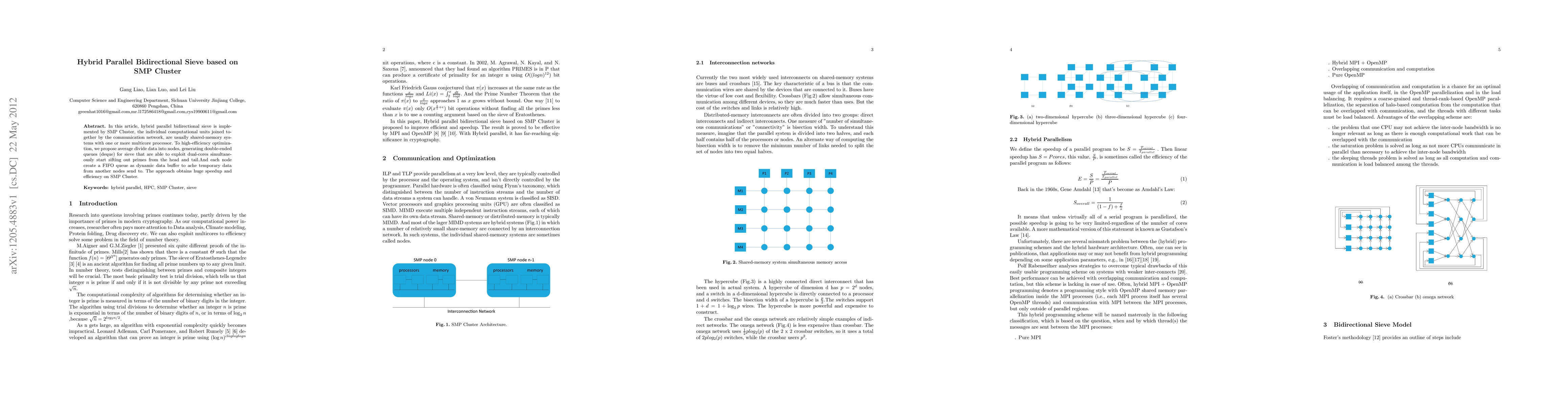 In this article, hybrid parallel bidirectional sieve method is implemented by SMP Cluster, the individual computational units joined together by the communication network, are usually shared-memory systems with one or more multicore processor. To high-efficiency optimization, we propose average divide data into nodes, generating double-ended queues (deque) for sieve method that are able to exploit dual-cores simultaneously start sifting out primes from the head and tail.And each node create a FIFO queue as dynamic data buffer to ache temporary data from another nodes send to. The approach obtains huge speedup and efficiency on SMP Cluster.