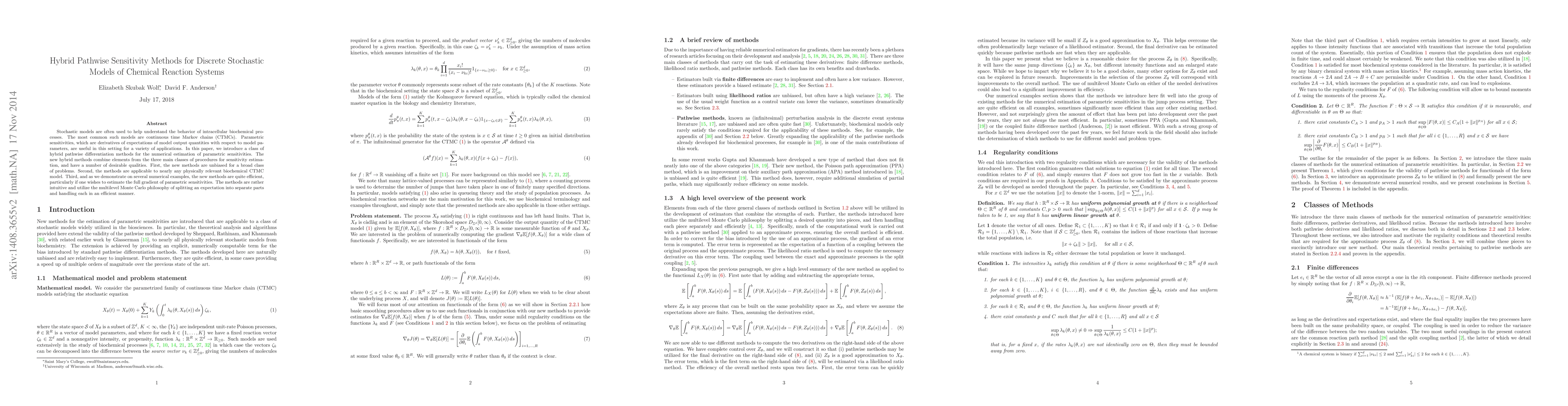 This paper introduces hybrid pathwise differentiation methods for estimating parametric sensitivities in discrete stochastic models of chemical reaction systems, combining elements from various sensitivity estimation procedures. The new methods are unbiased, broadly applicable, and efficient, especially for estimating full gradients, leveraging the multilevel Monte Carlo approach.