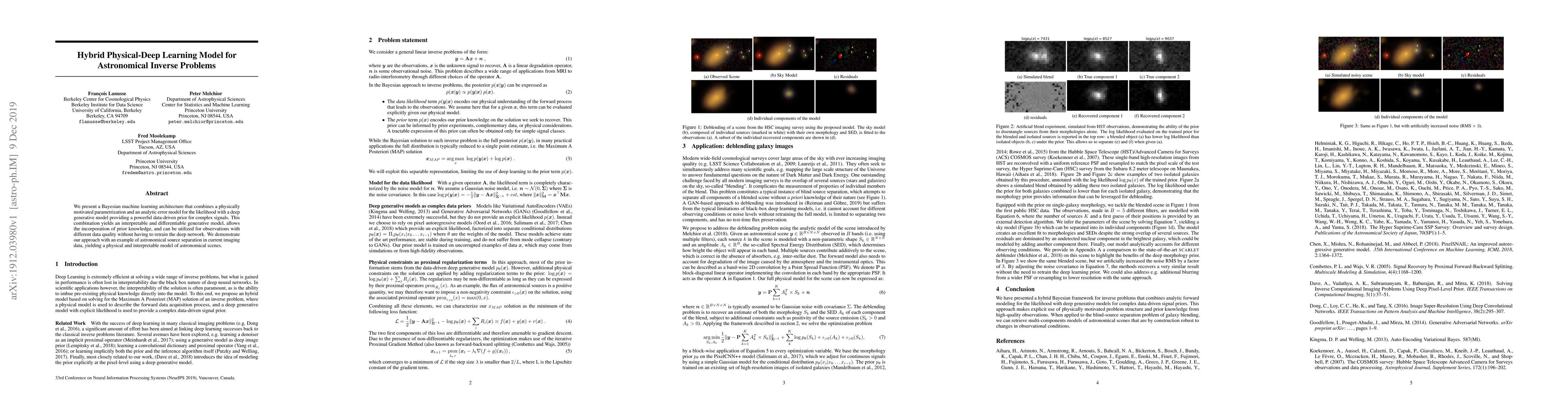 This paper introduces a hybrid machine learning model that merges a physically motivated parametrization with a deep generative model for astronomical inverse problems. The approach enables interpretable, differentiable modeling, incorporates prior knowledge, and maintains performance across varying data quality without retraining.