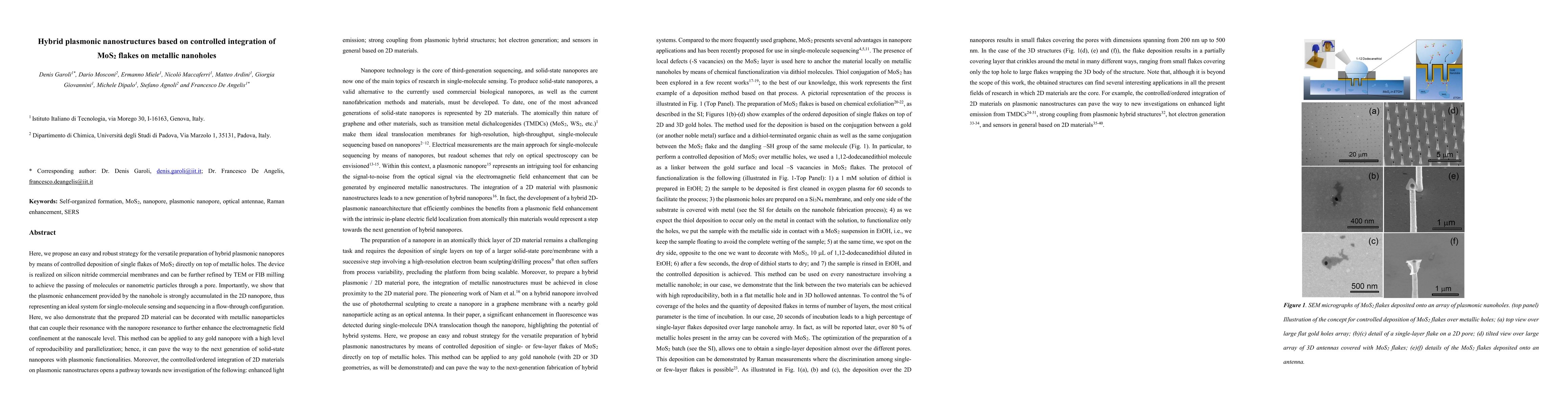 Researchers developed a method to create hybrid plasmonic nanostructures with enhanced electromagnetic field confinement using 2D MoS2 flakes on metallic nanoholes, enabling single-molecule sensing and sequencing.
