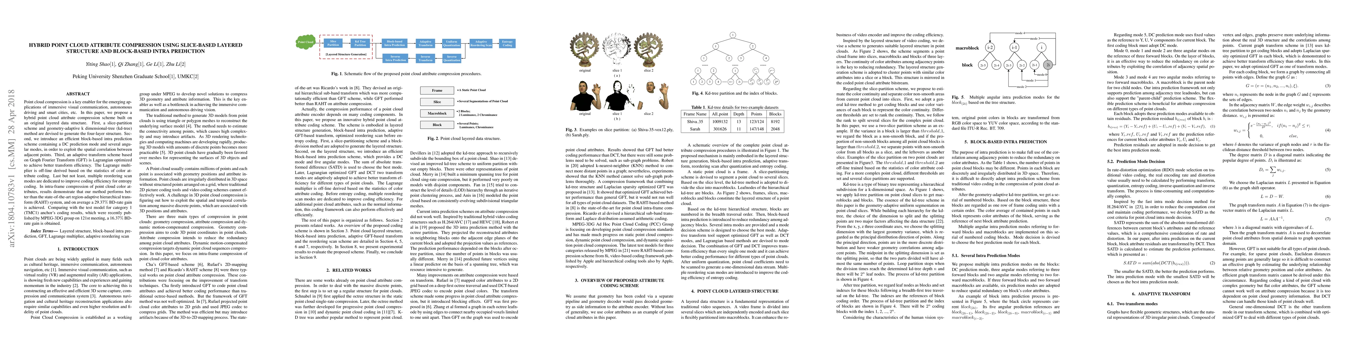 This paper proposes a hybrid point cloud compression scheme that outperforms state-of-the-art methods, achieving an average 29.37% BD-rate gain in color attribute compression.