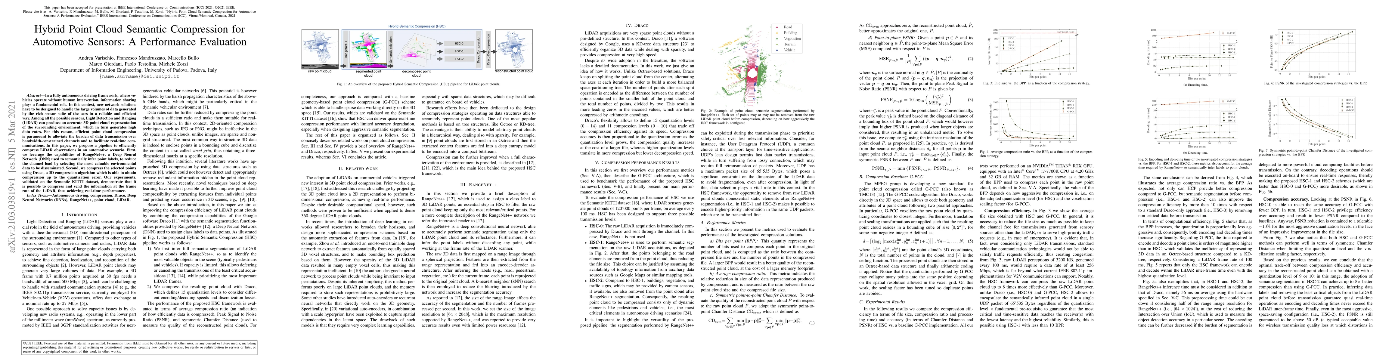 This paper proposes a hybrid point cloud semantic compression method for LiDAR data in autonomous vehicles, leveraging RangeNet++ for semantic inference and Draco for efficient compression, achieving real-time performance validated on the Semantic KITTI dataset.