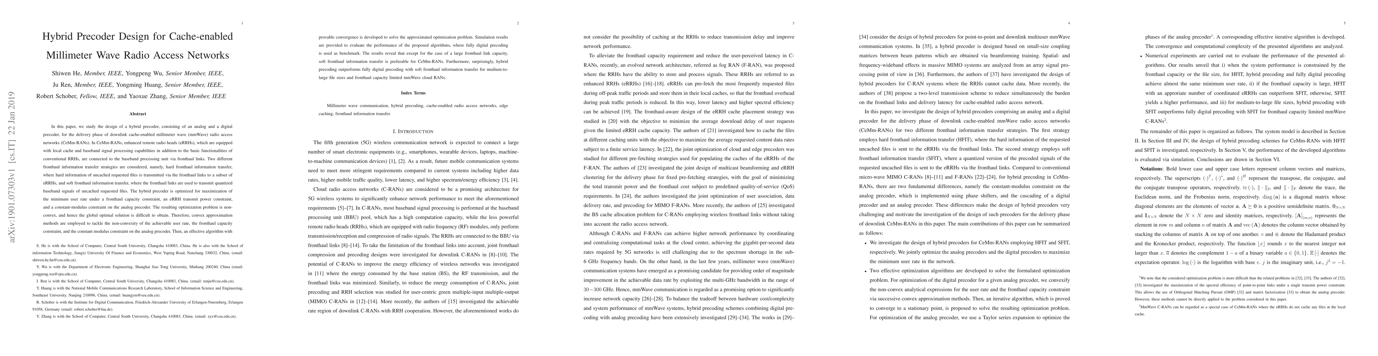 Researchers designed a hybrid precoder for cache-enabled millimeter wave networks to optimize user rates under fronthaul capacity constraints. Soft fronthaul information transfer was found to be preferable over hard transfer in most cases.