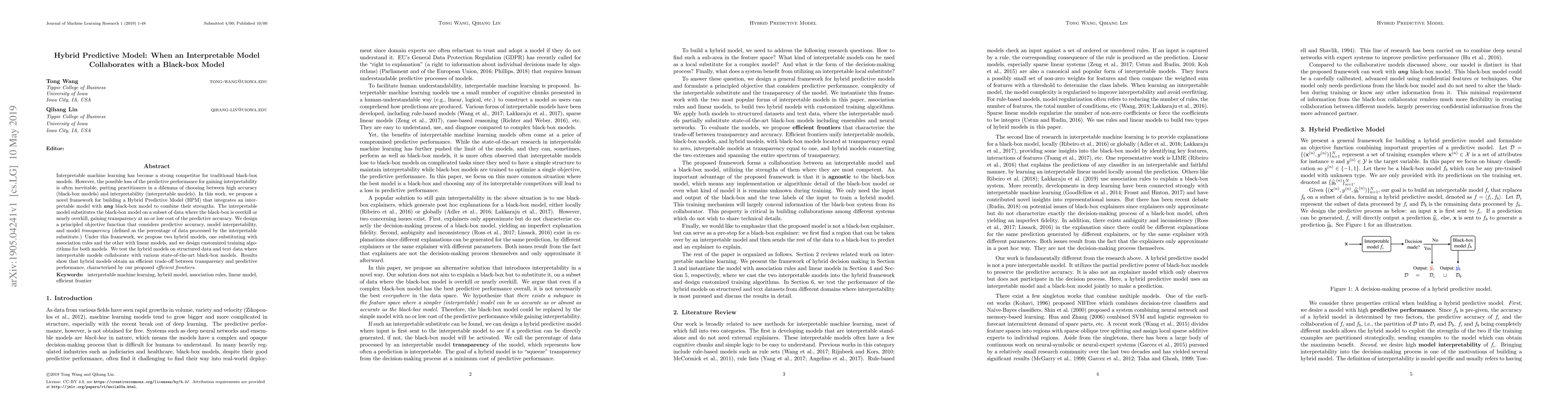 This paper proposes a Hybrid Predictive Model (HPM) that combines an interpretable model with a black-box model to leverage the strengths of both, achieving a balance between interpretability and predictive accuracy. The framework uses interpretable models to substitute for black-box models on less complex data, maintaining transparency without significant loss in accuracy.