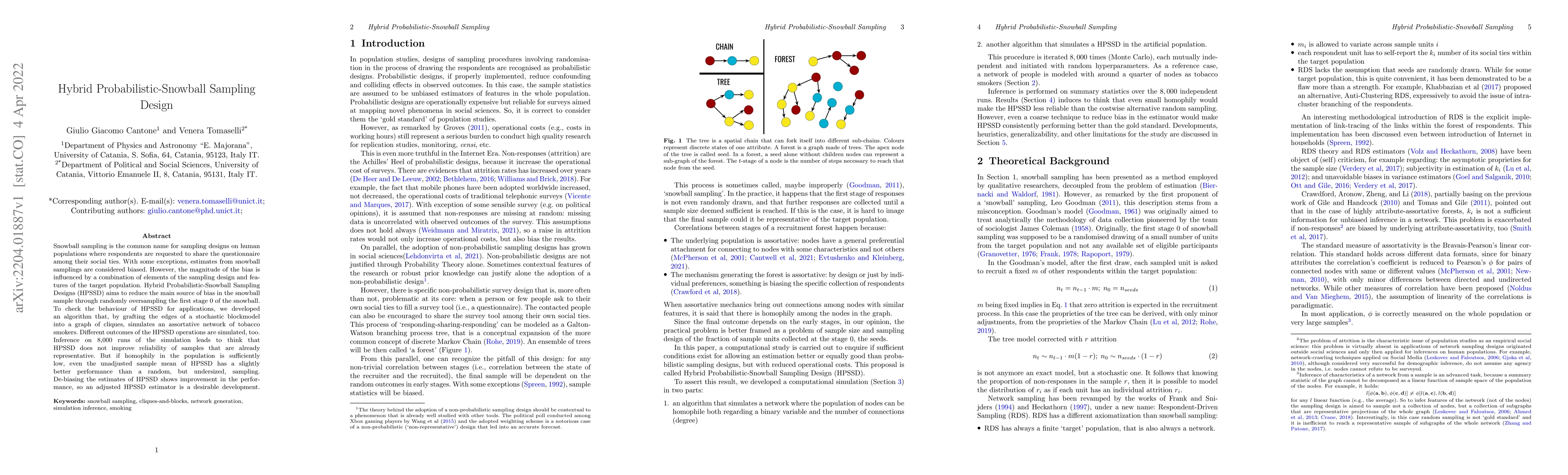 This paper explores Hybrid Probabilistic-Snowball Sampling Designs (HPSSD) to mitigate the bias in traditional snowball sampling. Simulation results suggest HPSSD slightly outperforms undersized random samples when population homophily is low, but de-biasing techniques further improve its performance.