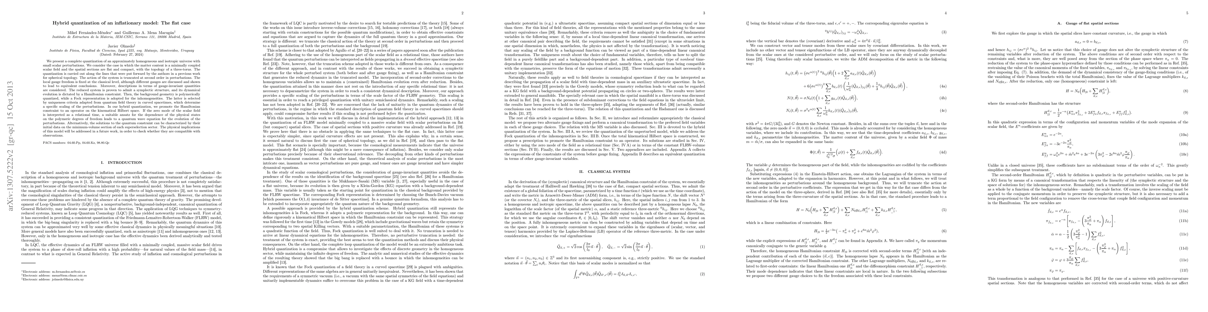 We present a complete quantization of an approximately homogeneous and isotropic universe with small scalar perturbations. We consider the case in which the matter content is a minimally coupled scalar field and the spatial sections are flat and compact, with the topology of a three-torus. The quantization is carried out along the lines that were put forward by the authors in a previous work for spherical topology. The action of the system is truncated at second order in perturbations. The local gauge freedom is fixed at the classical level, although different gauges are discussed and shown to lead to equivalent conclusions. Moreover, descriptions in terms of gauge-invariant quantities are considered. The reduced system is proven to admit a symplectic structure, and its dynamical evolution is dictated by a Hamiltonian constraint. Then, the background geometry is polymerically quantized, while a Fock representation is adopted for the inhomogeneities. The latter is selected by uniqueness criteria adapted from quantum field theory in curved spacetimes, which determine a specific scaling of the perturbations. In our hybrid quantization, we promote the Hamiltonian constraint to an operator on the kinematical Hilbert space. If the zero mode of the scalar field is interpreted as a relational time, a suitable ansatz for the dependence of the physical states on the polymeric degrees of freedom leads to a quantum wave equation for the evolution of the perturbations. Alternatively, the solutions to the quantum constraint can be characterized by their initial data on the minimum-volume section of each superselection sector. The physical implications of this model will be addressed in a future work, in order to check whether they are compatible with observations.