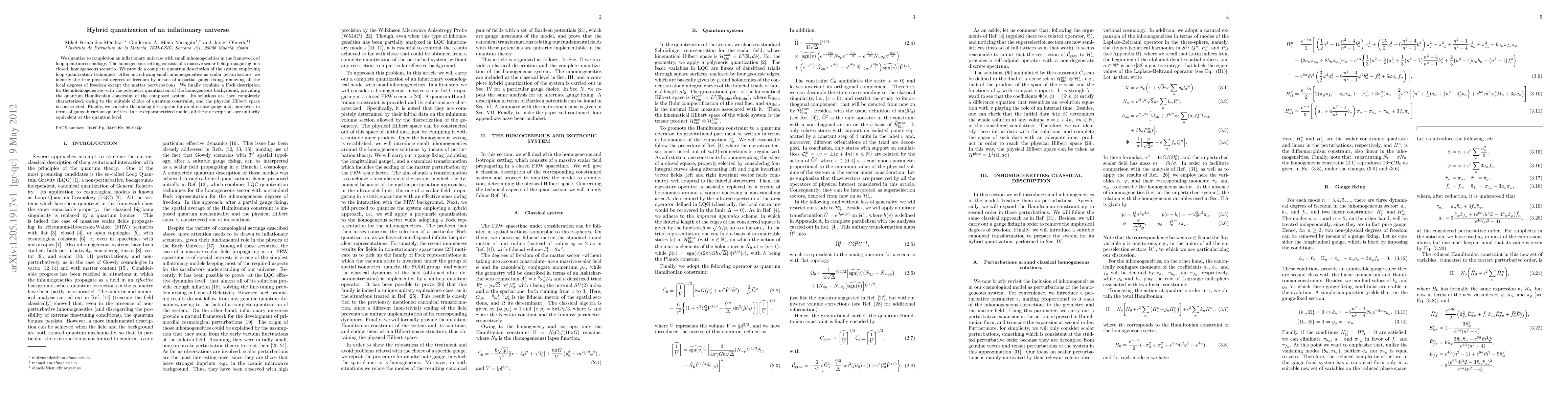 This paper develops a quantum description of an inflationary universe with inhomogeneities, combining loop quantization techniques to provide a complete understanding of the system's physical degrees of freedom.