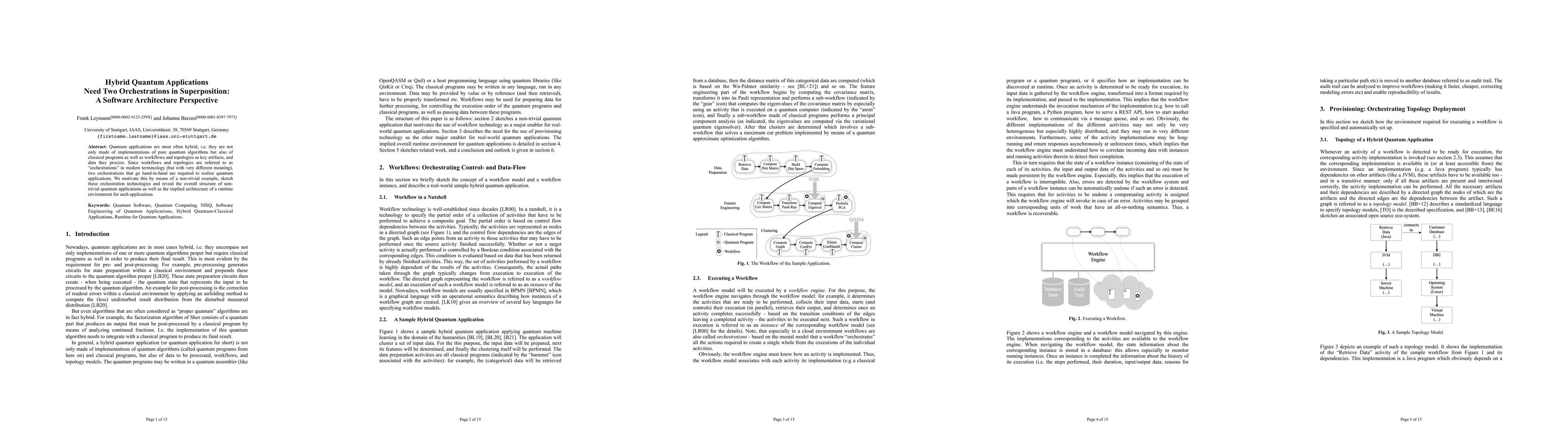 Quantum applications are most often hybrid, i.e. they are not only made of implementations of pure quantum algorithms but also of classical programs as well as workflows and topologies as key artifacts, and data they process. Since workflows and topologies are referred to as orchestrations in modern terminology (but with very different meaning), two orchestrations that go hand-in-hand are required to realize quantum applications. We motivate this by means of a non-trivial example, sketch these orchestration technologies and reveal the overall structure of nontrivial quantum applications as well as the implied architecture of a runtime environment for such applications.
