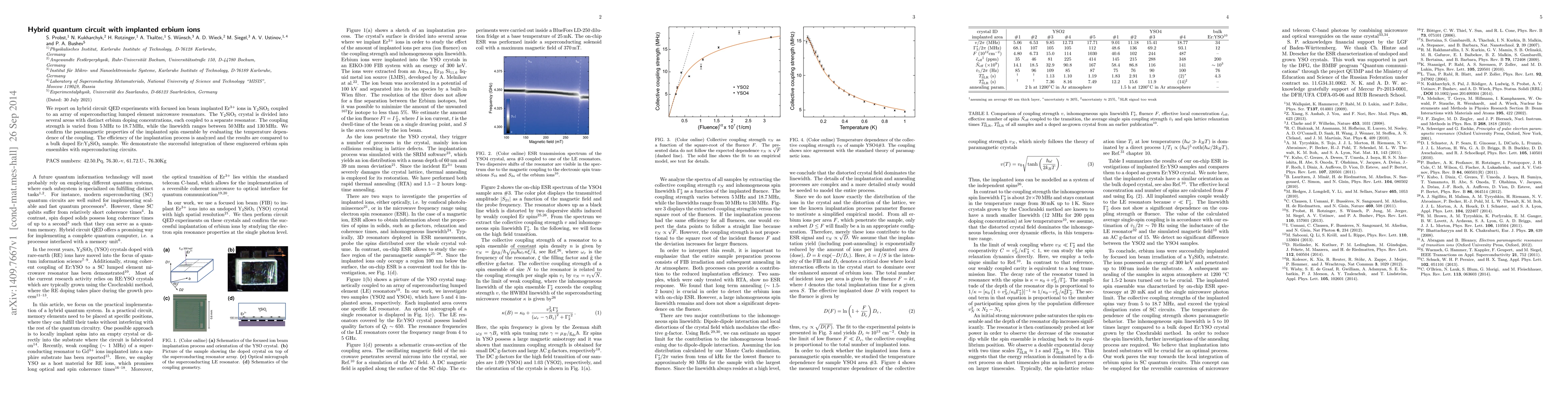 This paper details hybrid circuit QED experiments using focused ion beam implanted Er$^{3+}$ ions in Y$_2$SiO$_5$ crystals coupled to superconducting microwave resonators, showing variable coupling strengths and confirming the paramagnetic properties of the erbium ions through temperature dependence analysis. The study also compares the efficiency of the implantation process to bulk doping and demonstrates integration of engineered erbium spin ensembles with superconducting circuits.