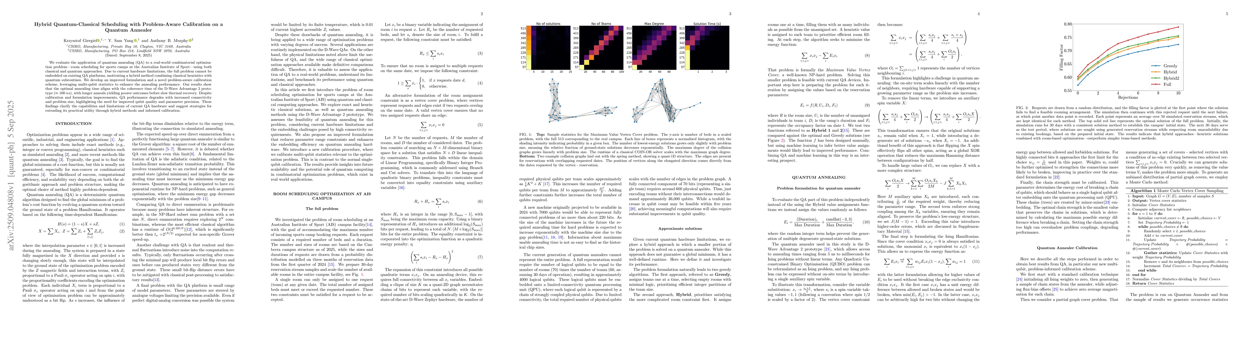 We evaluate the application of quantum annealing (QA) to a real-world combinatorial optimisation problem-room scheduling for sports camps at the Australian Institute of Sport-using both classical and quantum approaches. Due to current hardware limitations, the full problem cannot be embedded on existing QA platforms, motivating a hybrid method combining classical heuristics with quantum subroutines. We develop an improved formulation and a novel problem-aware calibration scheme, leveraging multi-qubit statistics to enhance the annealing performance. Our results show that the optimal annealing time aligns with the coherence time of the D-Wave Advantage 2 prototype (approximately 100 ns), with longer anneals yielding poorer outcomes before slow thermal recovery. Despite calibration and formulation improvements, QA performance degrades with increased connectivity and problem size, highlighting the need for improved qubit quality and parameter precision. These findings clarify the capabilities and limitations of current QA hardware and suggest strategies for extending its practical utility through hybrid methods and informed calibration.