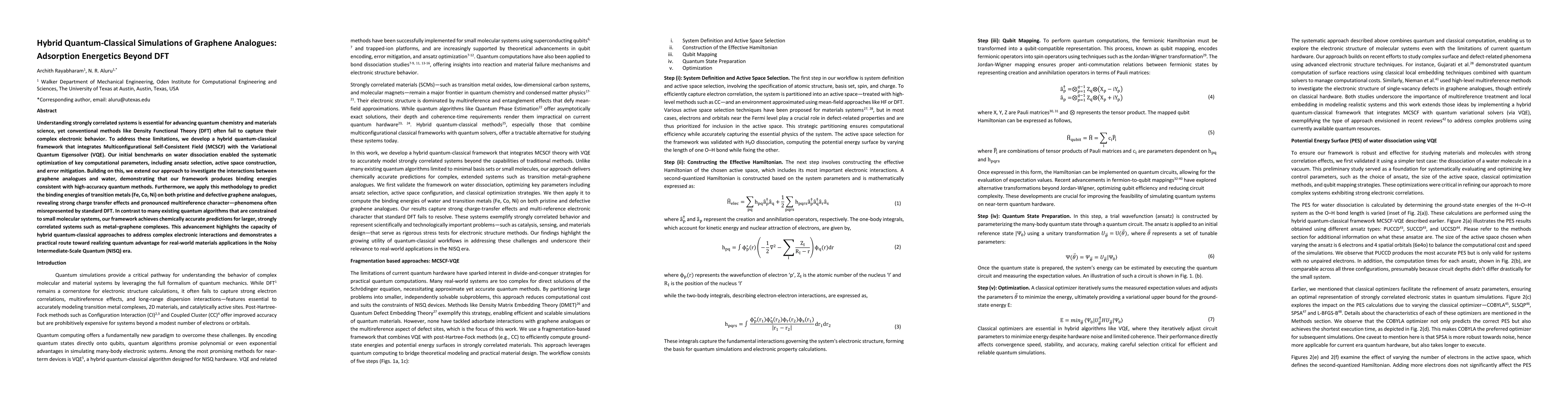 Understanding strongly correlated systems is essential for advancing quantum chemistry and materials science, yet conventional methods like Density Functional Theory (DFT) often fail to capture their complex electronic behavior. To address these limitations, we develop a hybrid quantum-classical framework that integrates Multiconfigurational Self Consistent Field (MCSCF) with the Variational Quantum Eigensolver (VQE). Our initial benchmarks on water dissociation enabled the systematic optimization of key computational parameters, including ansatz selection, active space construction, and error mitigation. Building on this, we extend our approach to investigate the interactions between graphene analogues and water, demonstrating that our framework produces binding energies consistent with high accuracy quantum methods. Furthermore, we apply this methodology to predict the binding energies of transition metals (Fe, Co, Ni) on both pristine and defective graphene analogues, revealing strong charge transfer effects and pronounced multireference character phenomena often misrepresented by standard DFT. In contrast to many existing quantum algorithms that are constrained to small molecular systems, our framework achieves chemically accurate predictions for larger, strongly correlated systems such as metal graphene complexes. This advancement highlights the capacity of hybrid quantum-classical approaches to address complex electronic interactions and demonstrates a practical route toward realizing quantum advantage for real world materials applications in the Noisy Intermediate Scale Quantum (NISQ) era.
