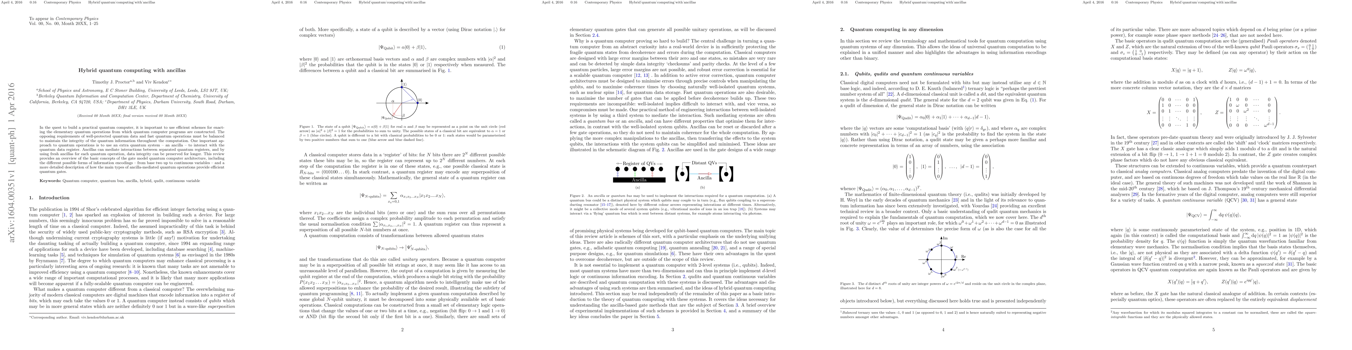 This review explores how ancillas can efficiently perform quantum operations while protecting quantum data integrity in hybrid quantum computing. It provides an overview of gate model quantum computer architecture, including various information encodings and ancilla-mediated operations.