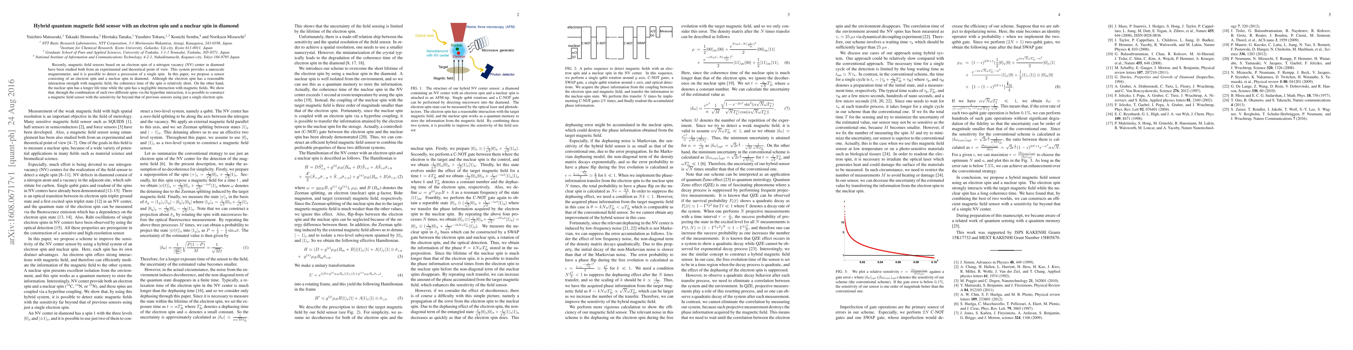 This paper proposes a hybrid quantum magnetic field sensor utilizing both an electron spin and a nuclear spin in diamond, leveraging the strengths of both to achieve enhanced sensitivity beyond traditional electron spin-based sensors, despite the electron spin's shorter coherence time and the nuclear spin's weaker magnetic field interaction.