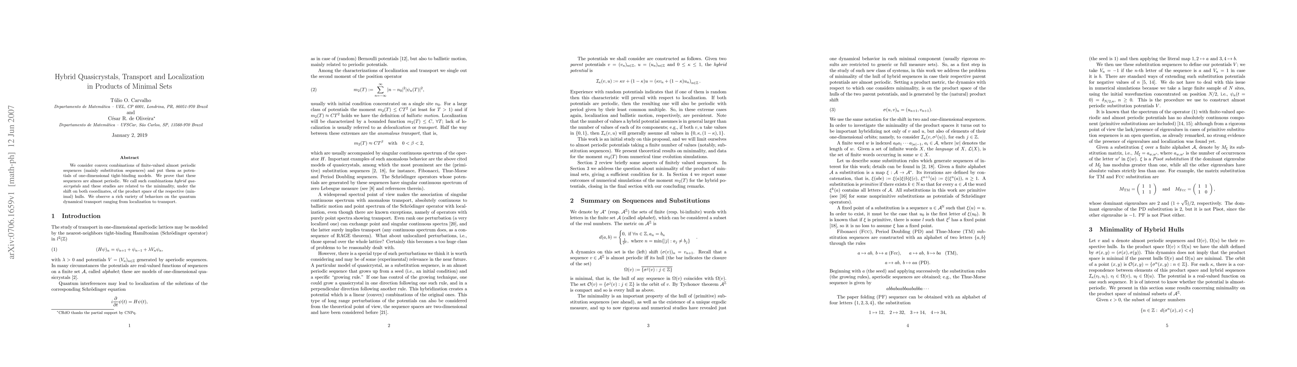 Researchers created hybrid quasicrystals from convex combinations of almost periodic sequences, studying their properties in tight-binding models. They found a range of behaviors, from localization to transport, highlighting the complexity of quantum dynamical systems.