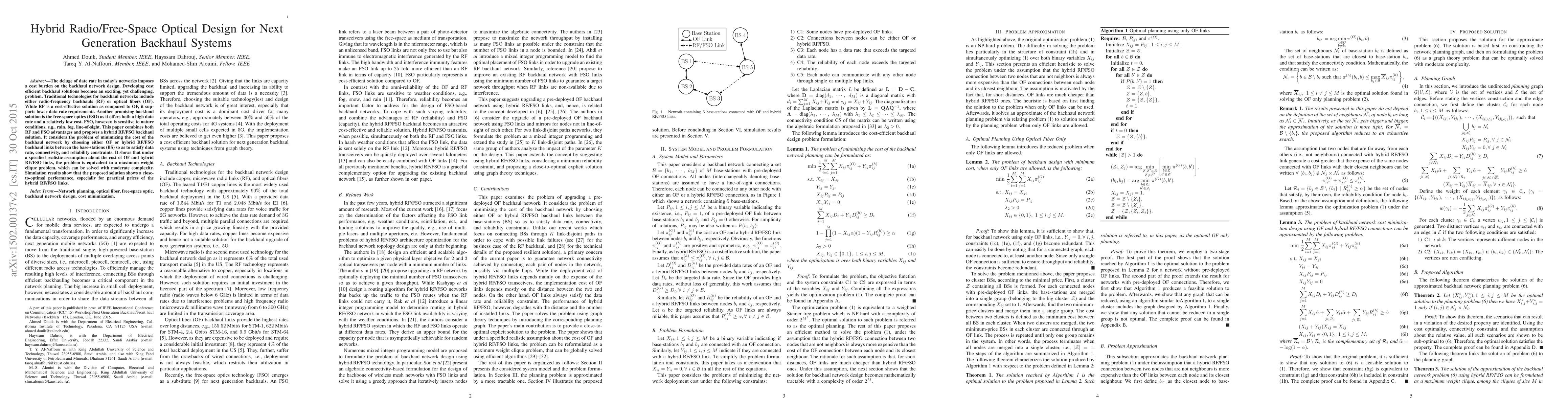 The paper proposes a hybrid RF/FSO backhaul solution for next-generation networks, formulating the problem as a maximum weight clique problem in a planning graph, solvable with moderate complexity.