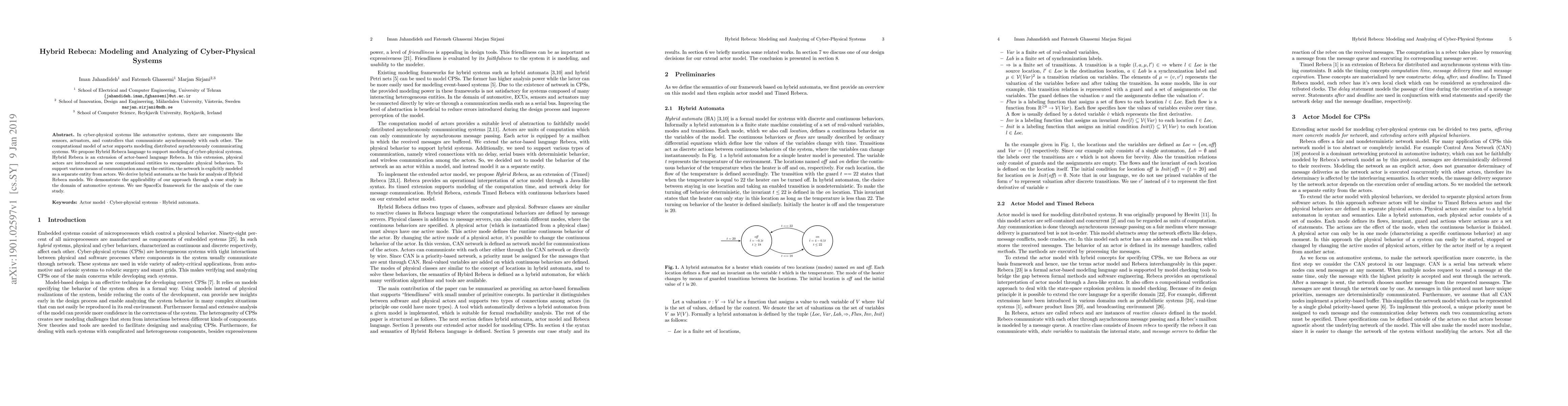 The paper proposes Hybrid Rebeca, an extension of the actor-based Rebeca language to model and analyze cyber-physical systems by incorporating physical actors and explicitly modeling the network. The approach is demonstrated through an automotive systems case study using the SpaceEx framework for analysis.