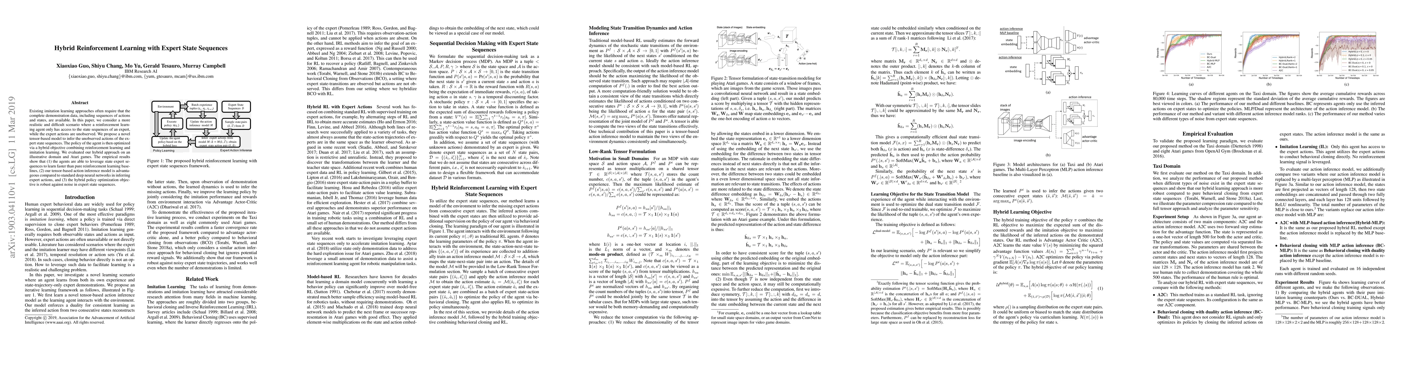 This paper proposes a hybrid reinforcement learning method that leverages expert state sequences to infer unobserved actions, optimizing the agent's policy via a combined reinforcement and imitation learning objective. Empirical results show faster learning compared to pure reinforcement learning, superior action inference, and robustness against noise in expert state sequences.