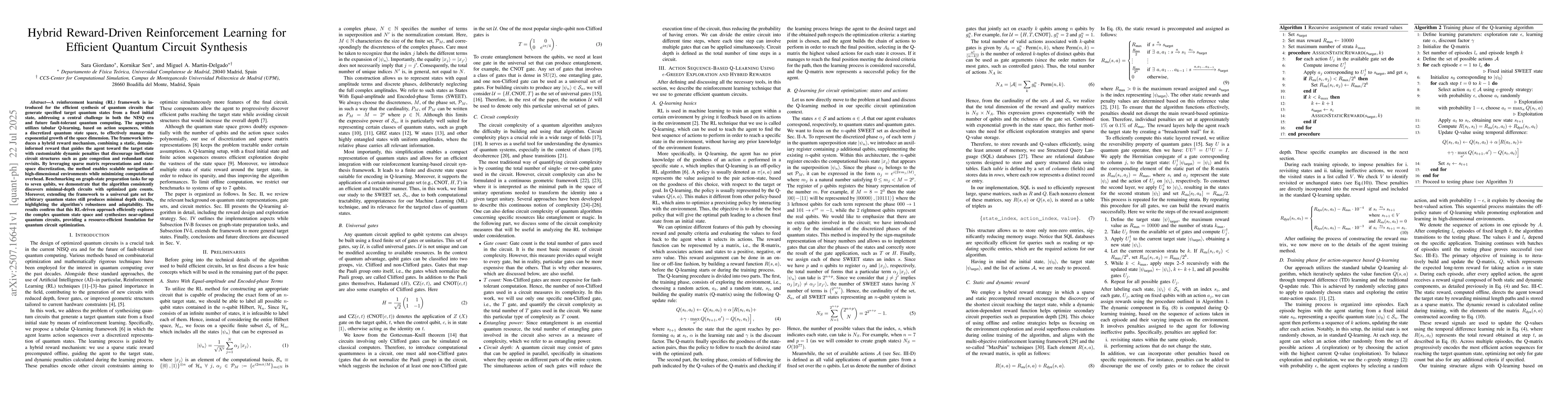A reinforcement learning (RL) framework is introduced for the efficient synthesis of quantum circuits that generate specified target quantum states from a fixed initial state, addressing a central challenge in both the NISQ era and future fault-tolerant quantum computing. The approach utilizes tabular Q-learning, based on action sequences, within a discretized quantum state space, to effectively manage the exponential growth of the space dimension. The framework introduces a hybrid reward mechanism, combining a static, domain-informed reward that guides the agent toward the target state with customizable dynamic penalties that discourage inefficient circuit structures such as gate congestion and redundant state revisits. By leveraging sparse matrix representations and state-space discretization, the method enables scalable navigation of high-dimensional environments while minimizing computational overhead. Benchmarking on graph-state preparation tasks for up to seven qubits, we demonstrate that the algorithm consistently discovers minimal-depth circuits with optimized gate counts. Moreover, extending the framework to a universal gate set for arbitrary quantum states, it still produces minimal depth circuits, highlighting the algorithm's robustness and adaptability. The results confirm that this RL-driven approach efficiently explores the complex quantum state space and synthesizes near-optimal quantum circuits, providing a resource-efficient foundation for quantum circuit optimization.