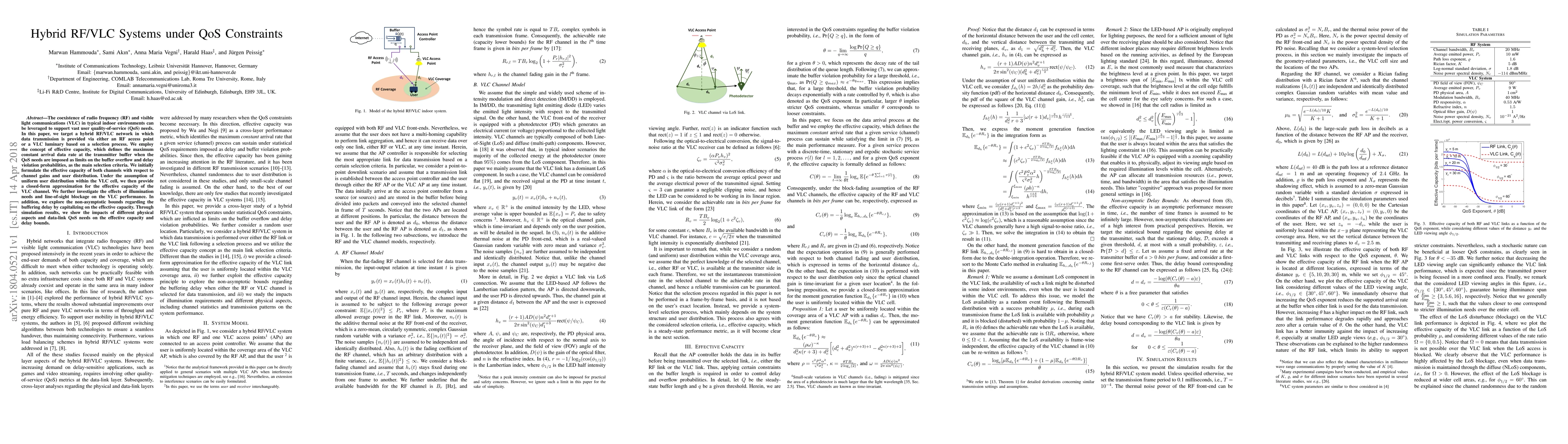 This paper explores hybrid RF/VLC systems for indoor environments, focusing on selecting the optimal communication channel based on effective capacity under QoS constraints. It provides closed-form approximations for VLC channel capacity and investigates the impact of illumination and blockage on performance, concluding with simulation results demonstrating the effects on capacity and delay.