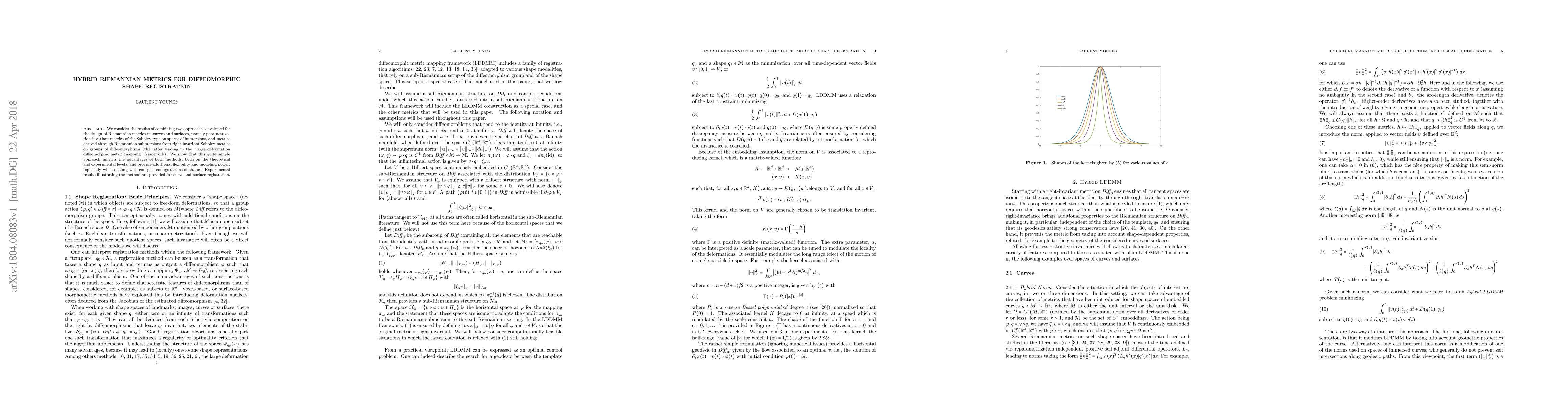This paper combines two Riemannian metrics for shape registration, merging parametrization-invariant Sobolev metrics and metrics derived from diffeomorphism groups, to achieve enhanced flexibility and modeling power for complex shape configurations. Experimental results demonstrate the method's effectiveness in curve and surface registration.