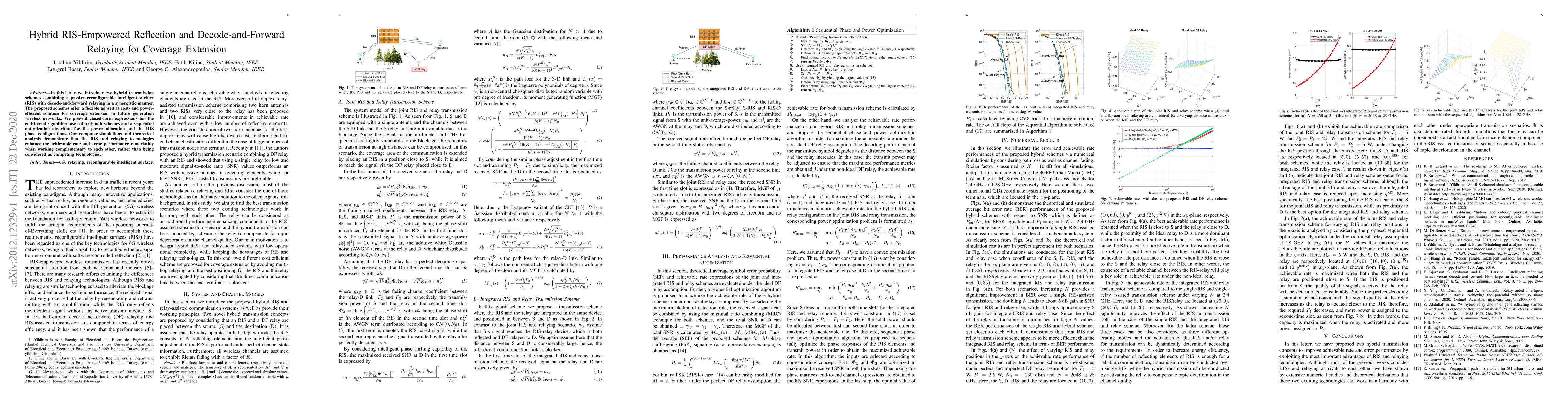 This paper proposes hybrid transmission schemes combining passive reconfigurable intelligent surfaces (RIS) with decode-and-forward relaying for cost-effective wireless network coverage extension. The study presents optimization algorithms and simulations showing that RIS and relaying technologies enhance performance when used synergistically.