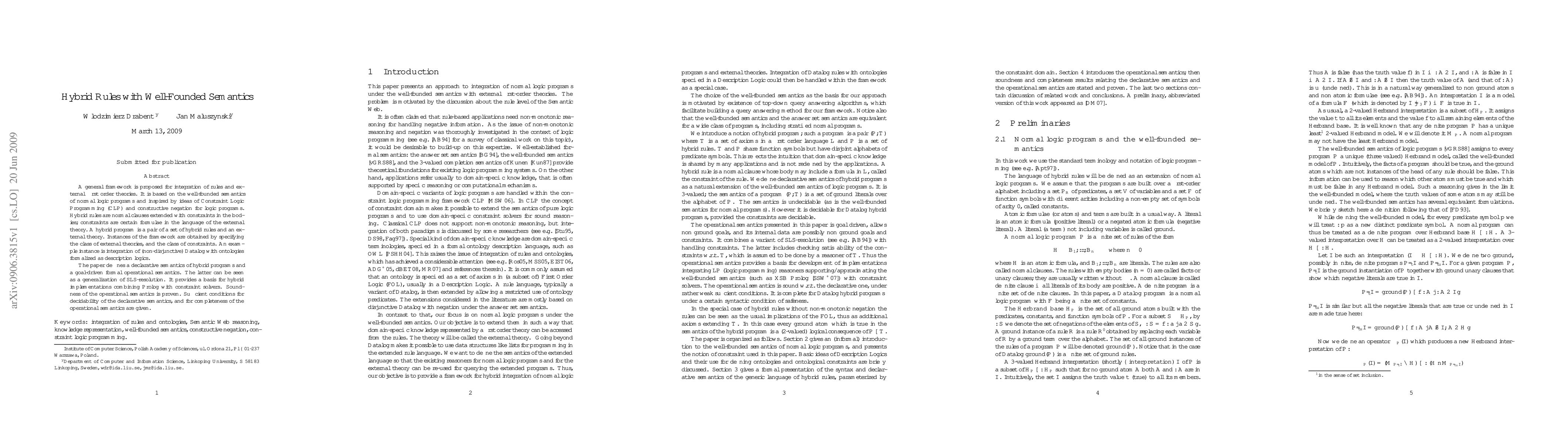 This paper introduces a framework for integrating rules and external first-order theories using well-founded semantics, proposing hybrid rules that combine normal logic programs with constraints from external theories. It provides both declarative and operational semantics, and proves soundness, decidability, and completeness conditions.