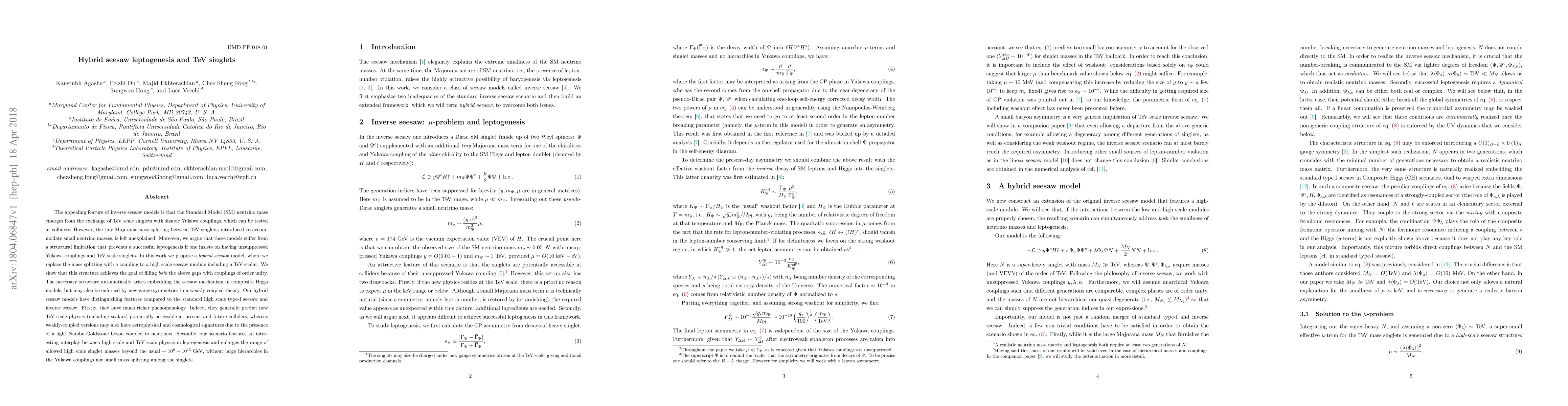 This paper proposes a hybrid seesaw model that combines features of the inverse seesaw and high-scale seesaw mechanisms to explain small neutrino masses and achieve successful leptogenesis. The model predicts new TeV scale physics and potentially observable signatures at colliders, while avoiding the limitations of traditional seesaw models.