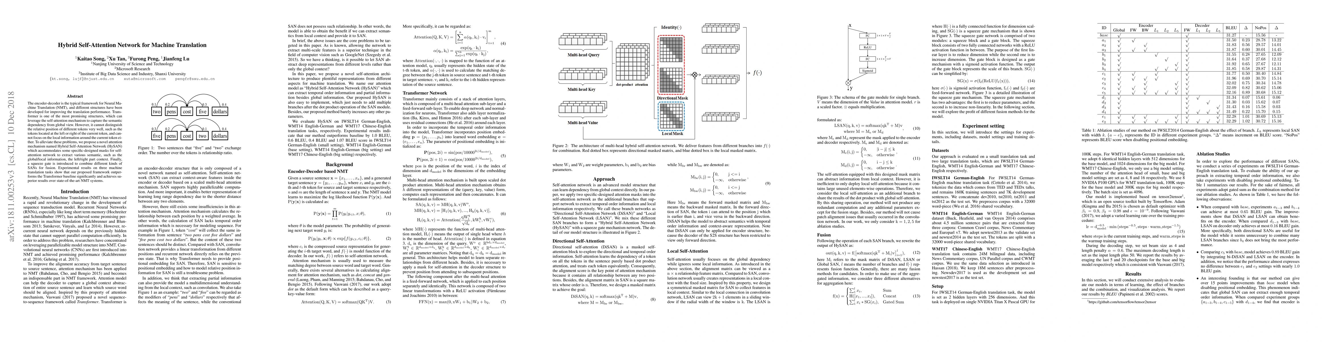 The paper proposes a Hybrid Self-Attention Network (HySAN) to enhance machine translation by incorporating masks to capture both global and local context, and a squeeze gate for fusion. Experimental results demonstrate that HySAN outperforms the Transformer baseline and state-of-the-art NMT systems on three translation tasks.