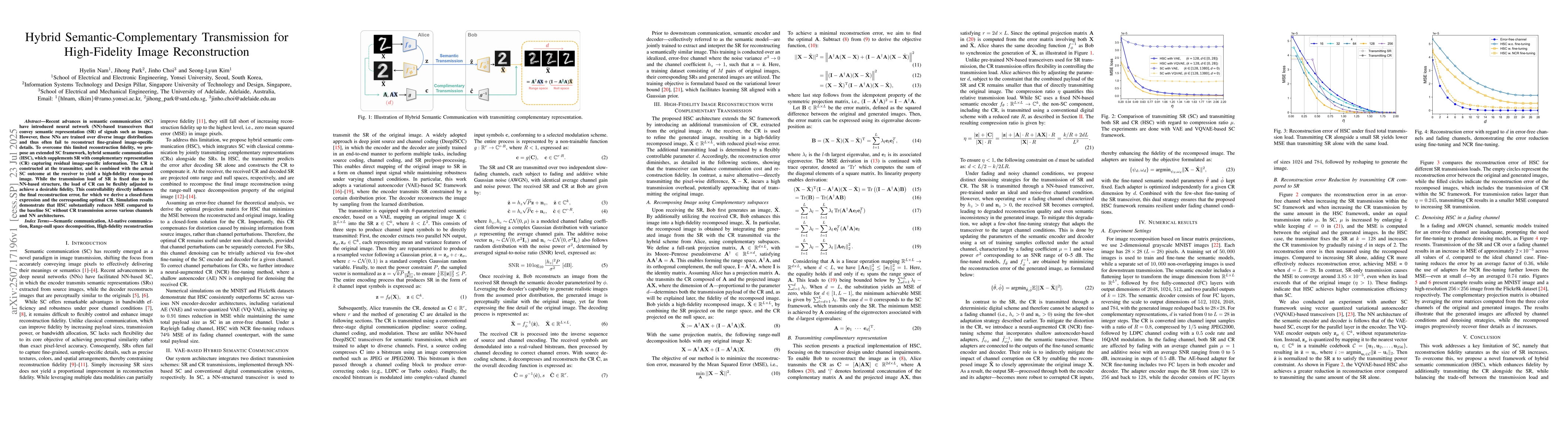 Recent advances in semantic communication (SC) have introduced neural network (NN)-based transceivers that convey semantic representation (SR) of signals such as images. However, these NNs are trained over diverse image distributions and thus often fail to reconstruct fine-grained image-specific details. To overcome this limited reconstruction fidelity, we propose an extended SC framework, hybrid semantic communication (HSC), which supplements SR with complementary representation (CR) capturing residual image-specific information. The CR is constructed at the transmitter, and is combined with the actual SC outcome at the receiver to yield a high-fidelity recomposed image. While the transmission load of SR is fixed due to its NN-based structure, the load of CR can be flexibly adjusted to achieve a desirable fidelity. This controllability directly influences the final reconstruction error, for which we derive a closed-form expression and the corresponding optimal CR. Simulation results demonstrate that HSC substantially reduces MSE compared to the baseline SC without CR transmission across various channels and NN architectures.