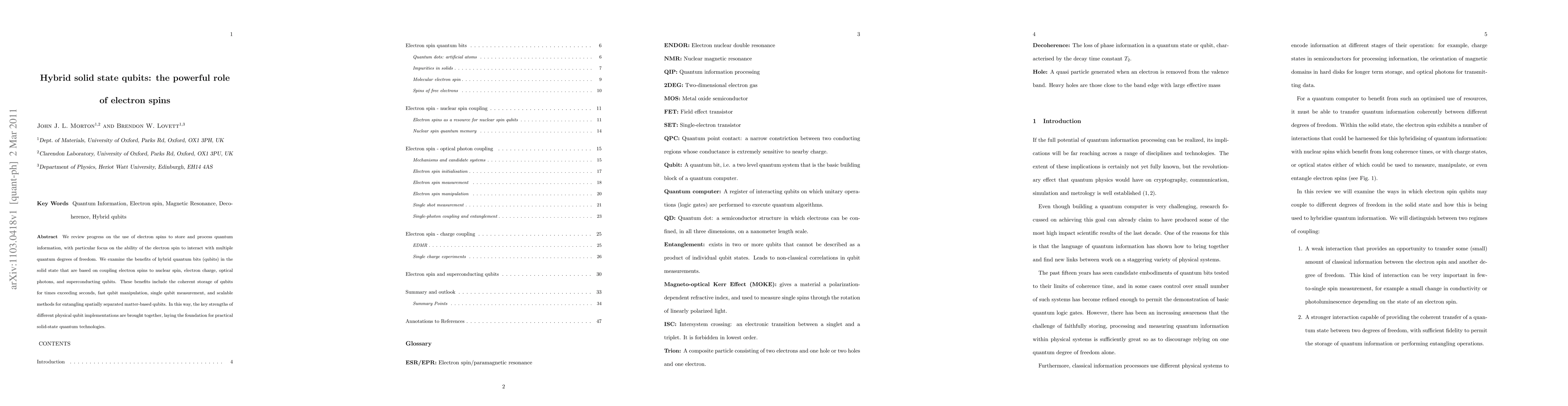 The paper presents a comprehensive review of hybrid quantum systems based on electron spins, detailing their advantages and potential for scalable quantum technologies.