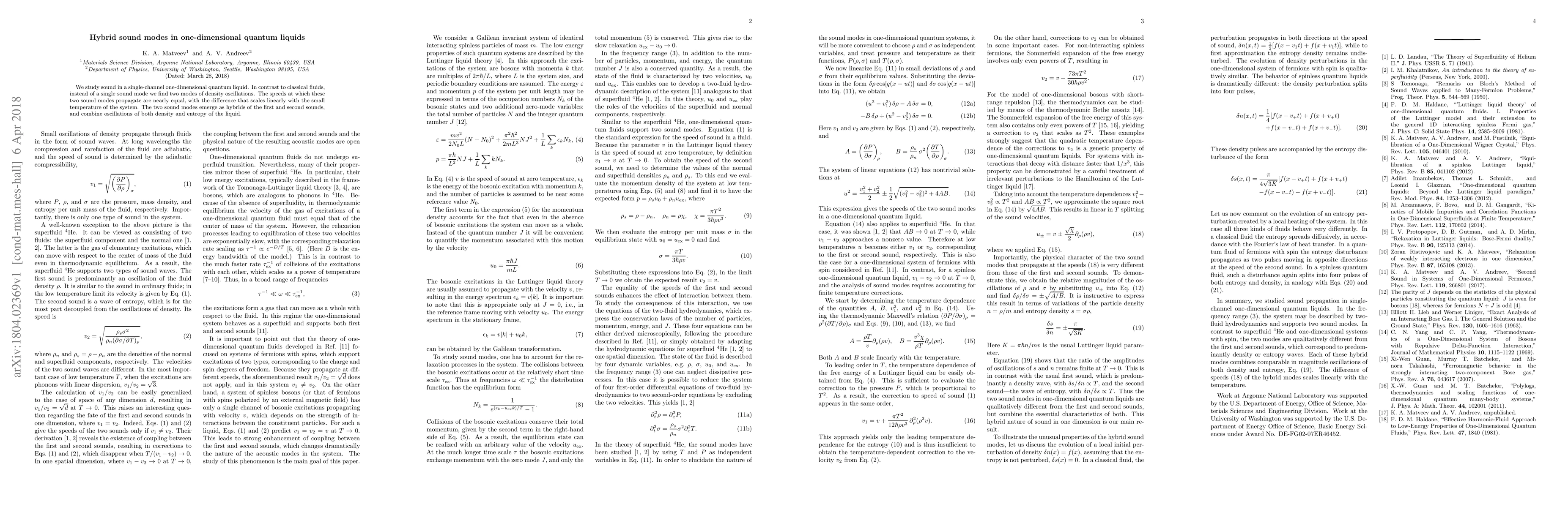 We study sound in a single-channel one-dimensional quantum liquid. In contrast to classical fluids, instead of a single sound mode we find two modes of density oscillations. The speeds at which these two sound modes propagate are nearly equal, with the difference that scales linearly with the small temperature of the system. The two sound modes emerge as hybrids of the first and second sounds, and combine oscillations of both density and entropy of the liquid.