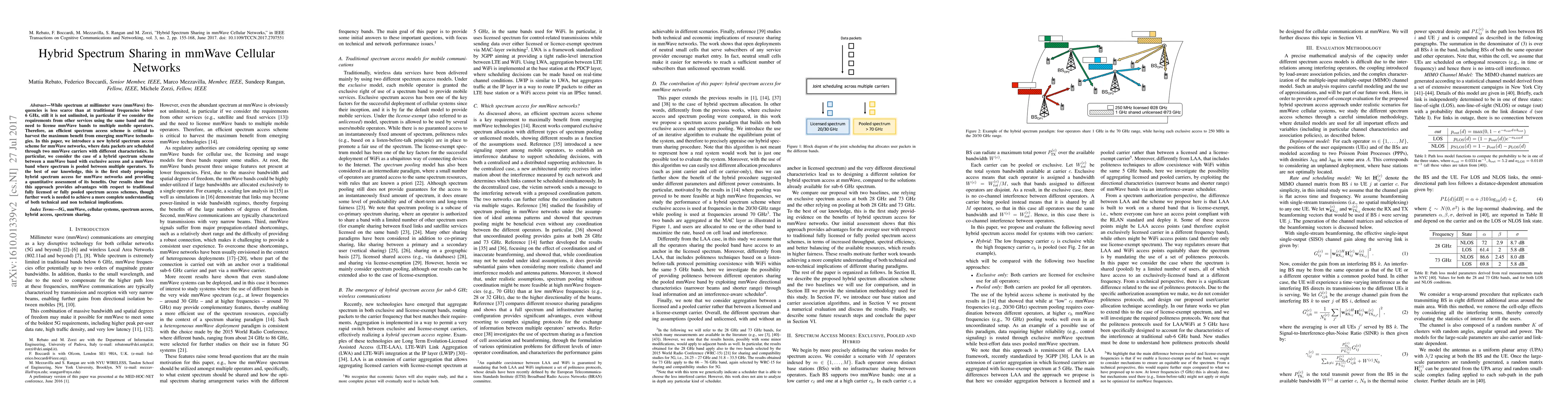 This paper proposes a novel hybrid spectrum access scheme for mmWave cellular networks, combining exclusive and pooled spectrum bands to maximize benefits. The study finds significant advantages over traditional access methods, though further research is required to fully understand its implications.
