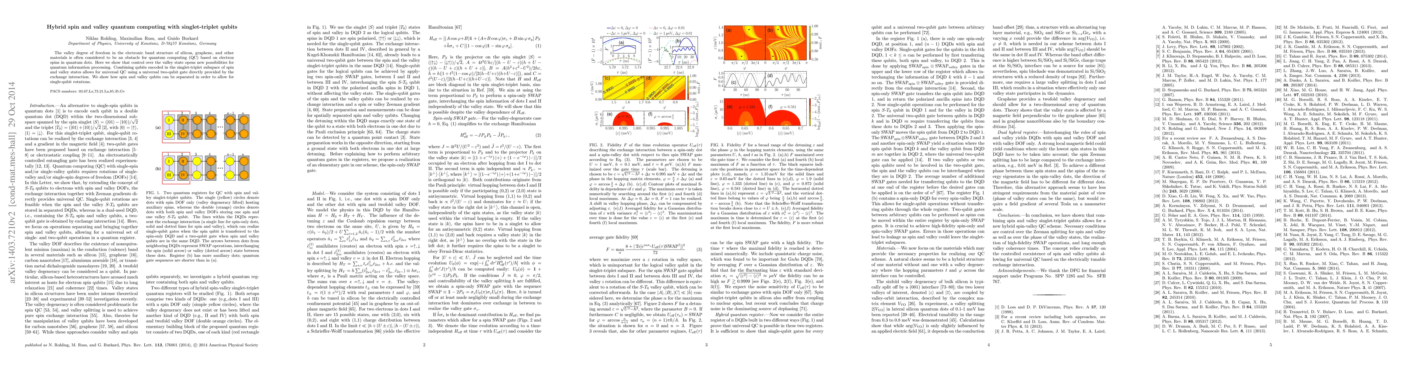 This paper proposes a novel hybrid spin and valley quantum computing approach utilizing singlet-triplet qubits in silicon and graphene. It demonstrates that controlling the valley state enables universal quantum information processing through a two-qubit gate via exchange interaction, while maintaining separable spin and valley qubits for individual rotations.
