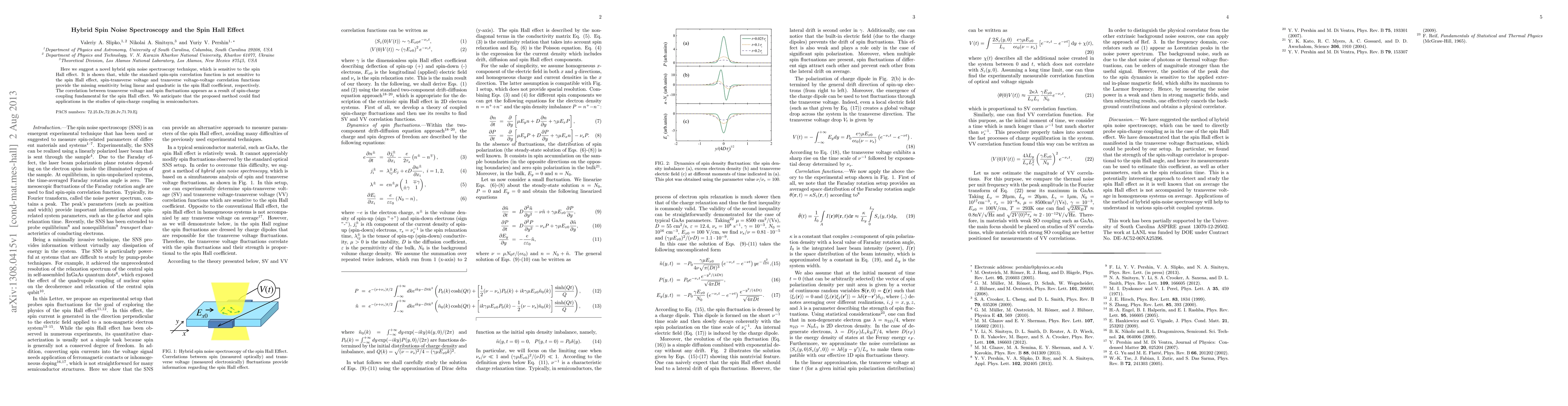 The research introduces a novel hybrid spin noise spectroscopy technique sensitive to the spin Hall effect, utilizing spin-transverse voltage and transverse voltage-voltage correlation functions as indicators, which are linear and quadratic in the spin Hall coefficient, respectively.