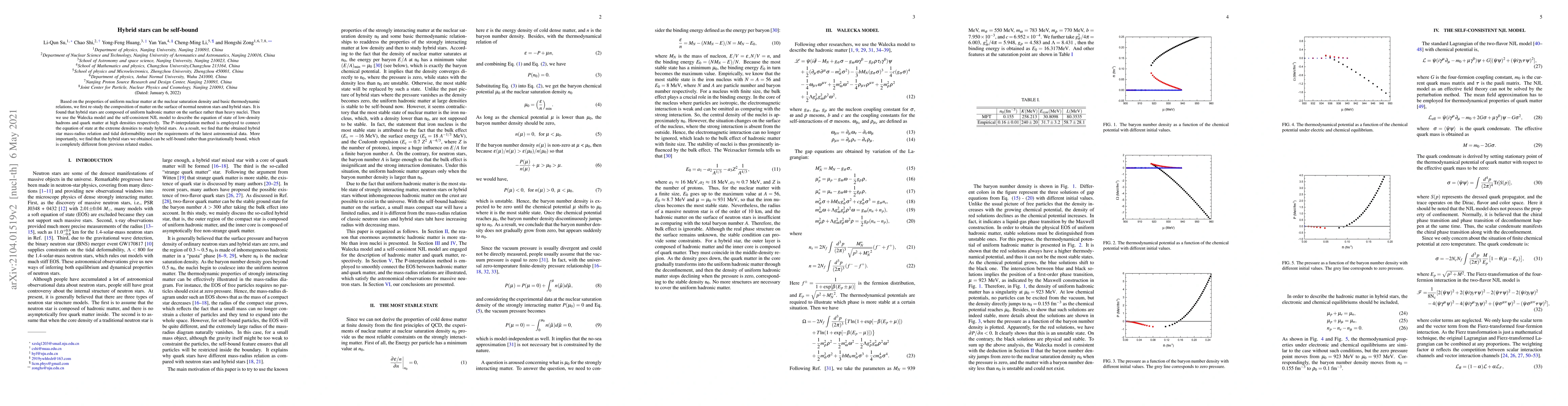 This paper demonstrates that hybrid stars can be self-bound rather than gravitationally bound, using the Walceka model and self-consistent NJL model to describe their equation of state. The findings show that hybrid stars meet recent astronomical data and are composed of uniform hadronic matter on the surface.